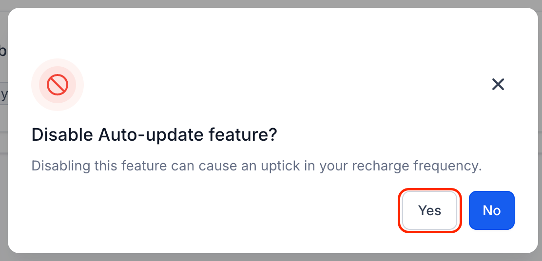 - you will see this popup to acknowledge that auto ramp up feature has now been disabled.