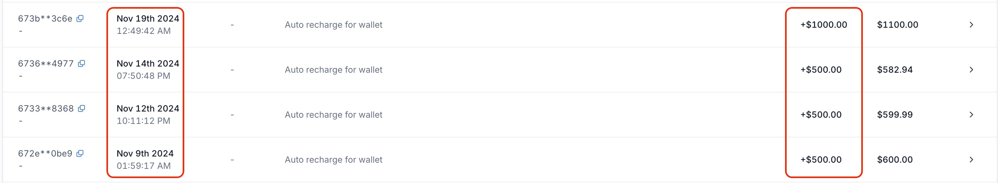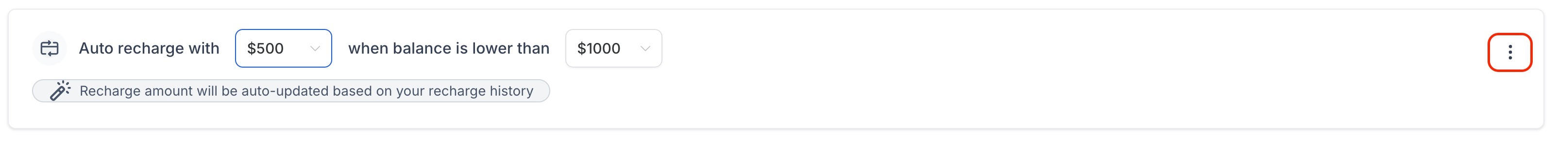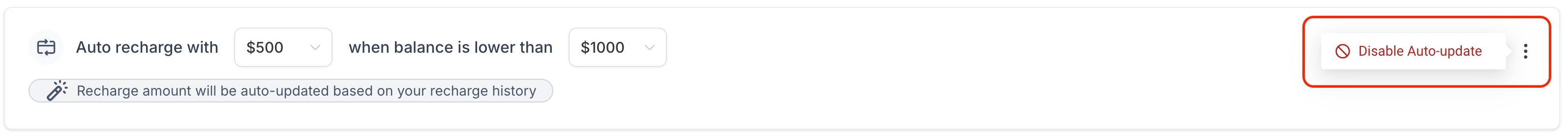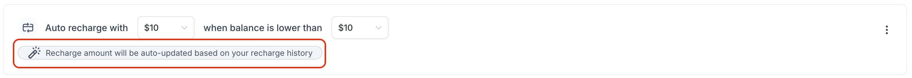 Auto Ramp Up dynamically adjusts your auto recharge amount based on your usage history. If your current auto recharge amount (e.g., $500) triggers multiple times within a short period (e.g., three times in a week), the system automatically escalates your recharge amount to the next tier (e.g., from $500 to $1000).