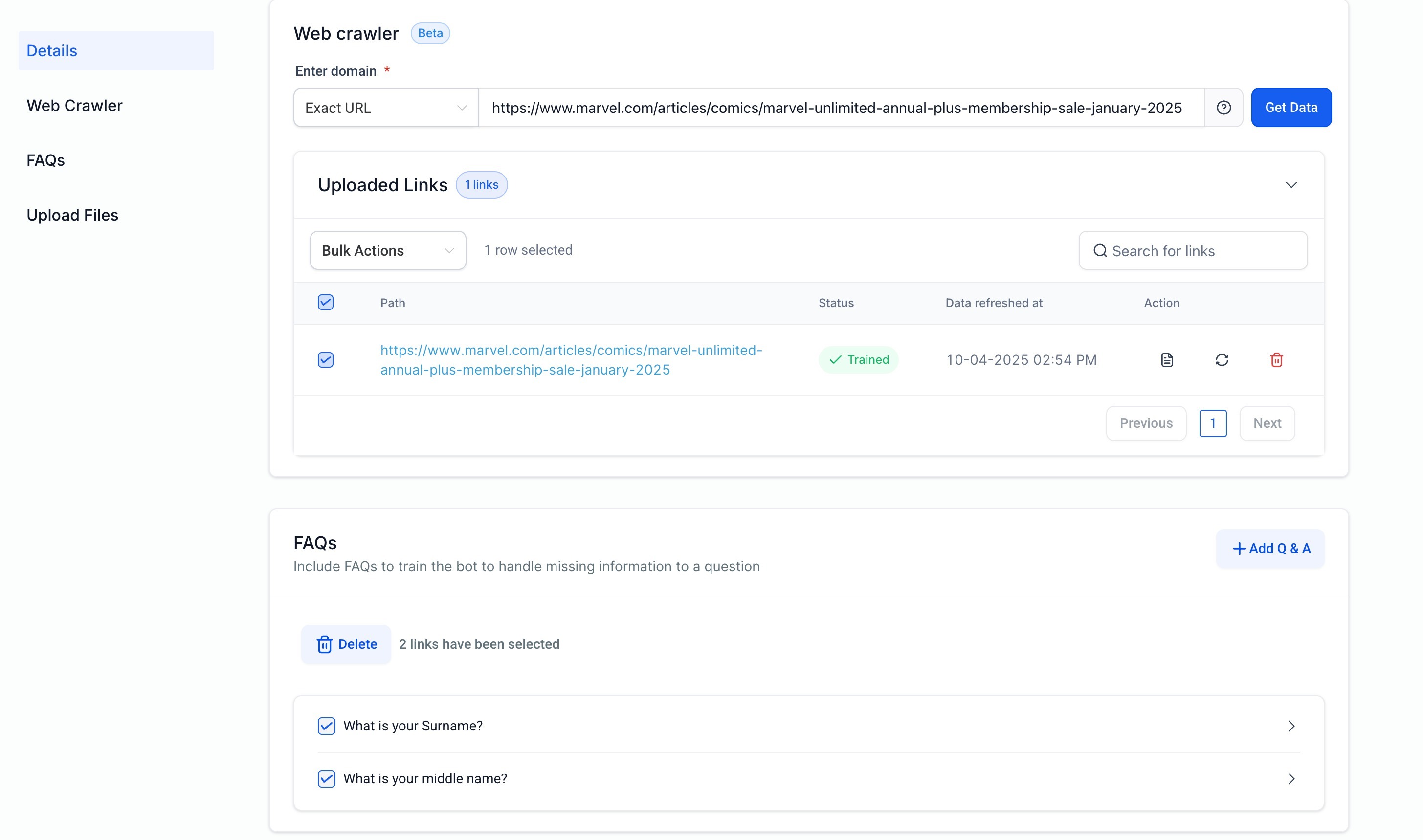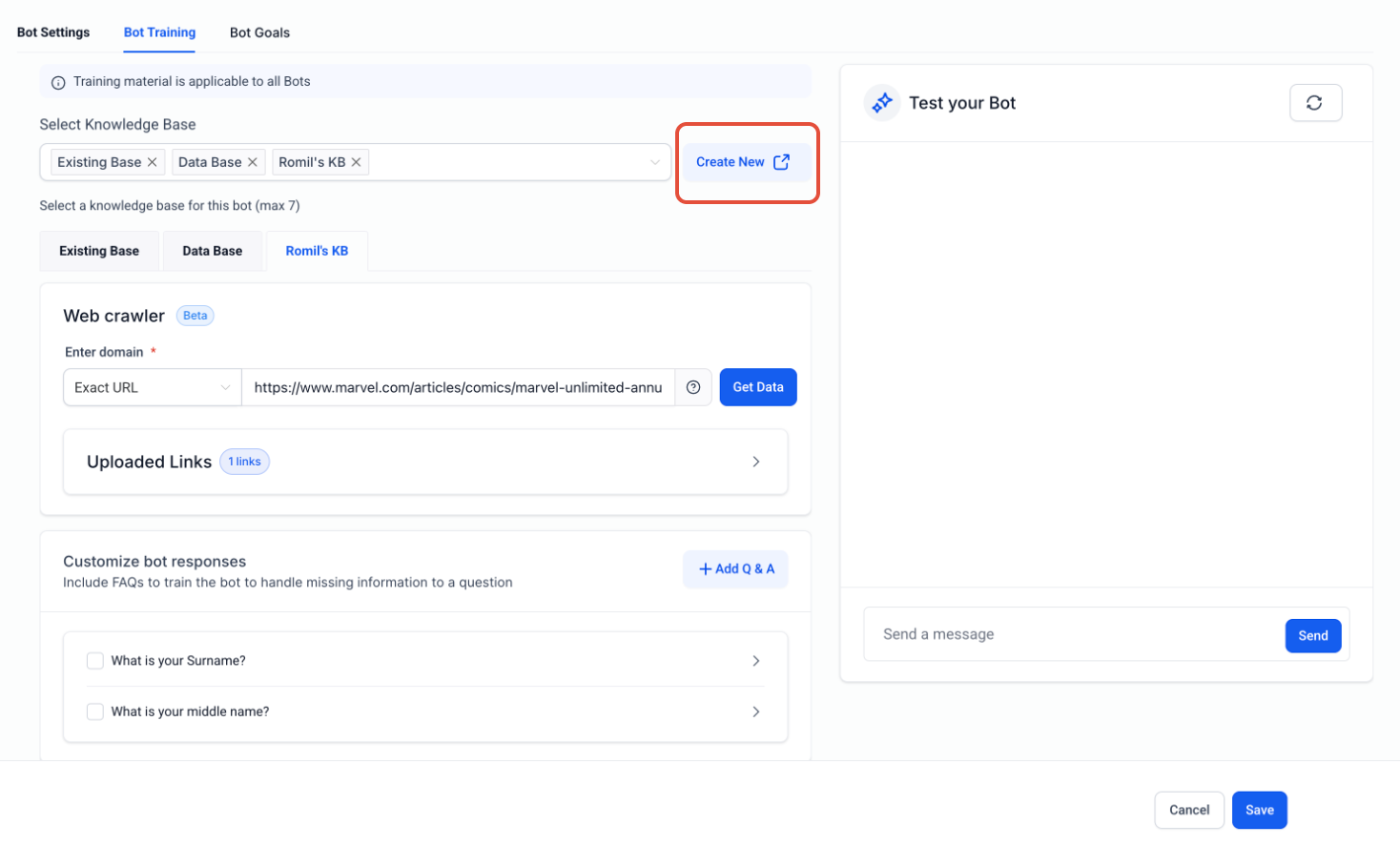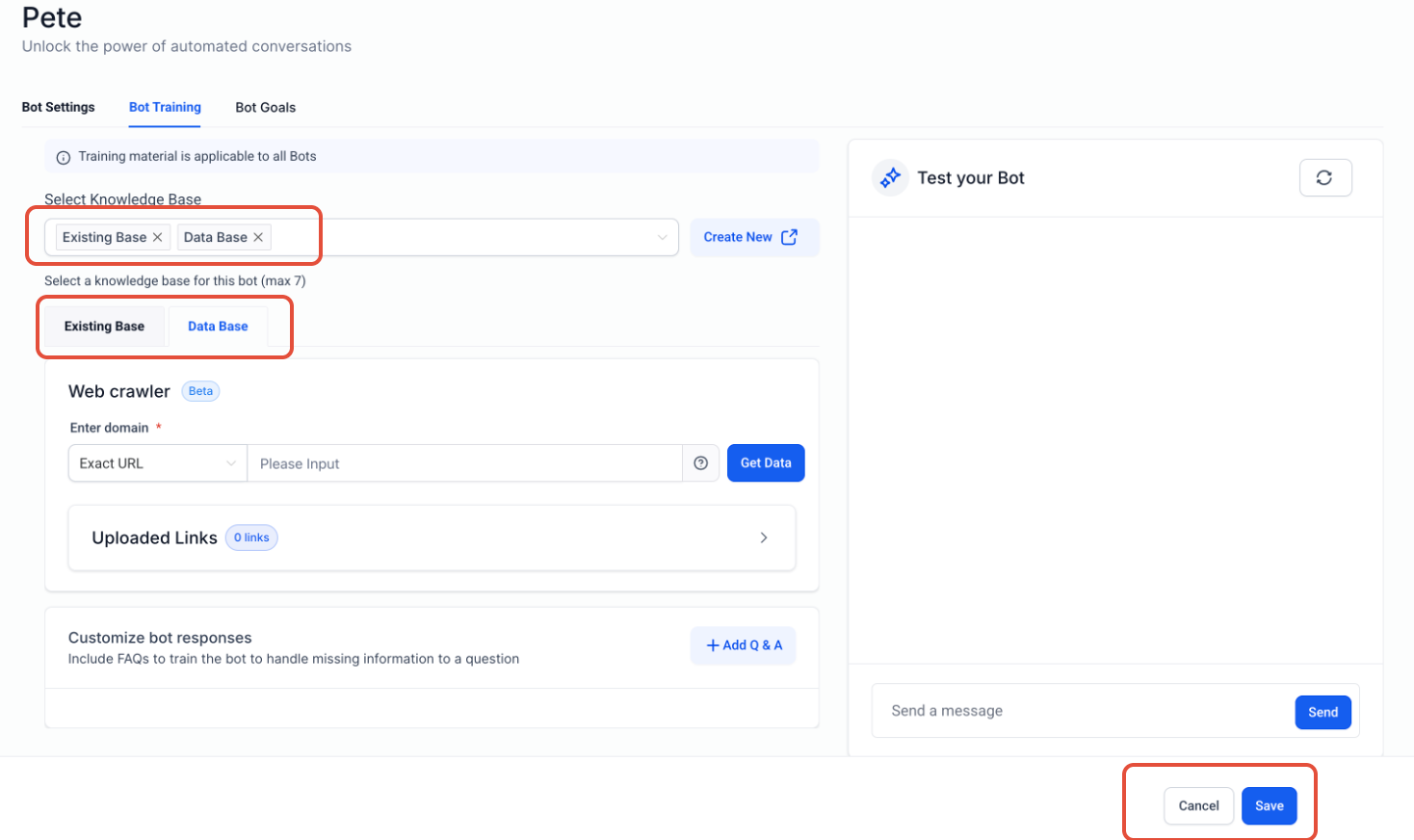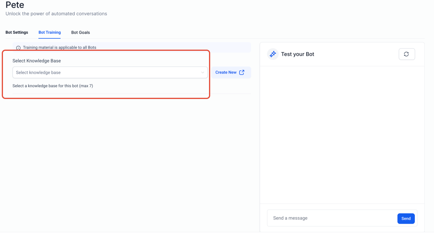 Choose up to 7 knowledge bases to train that bot.