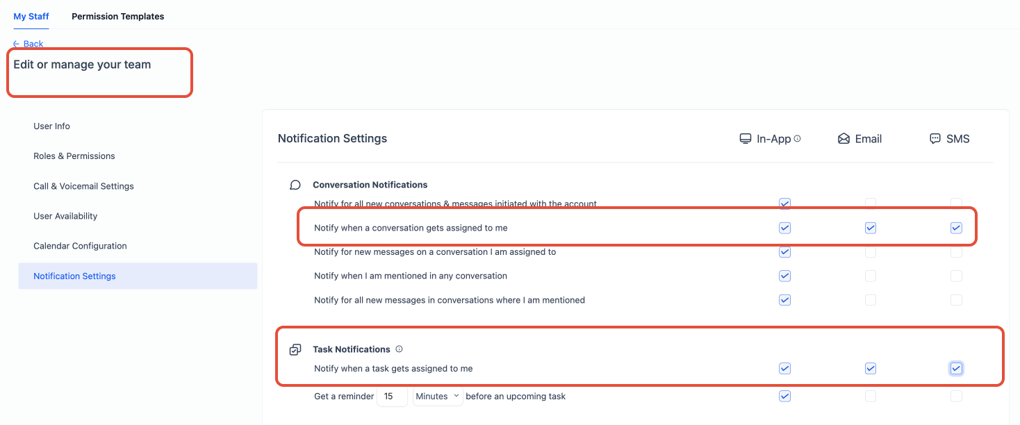 Notification Management for Assigned user