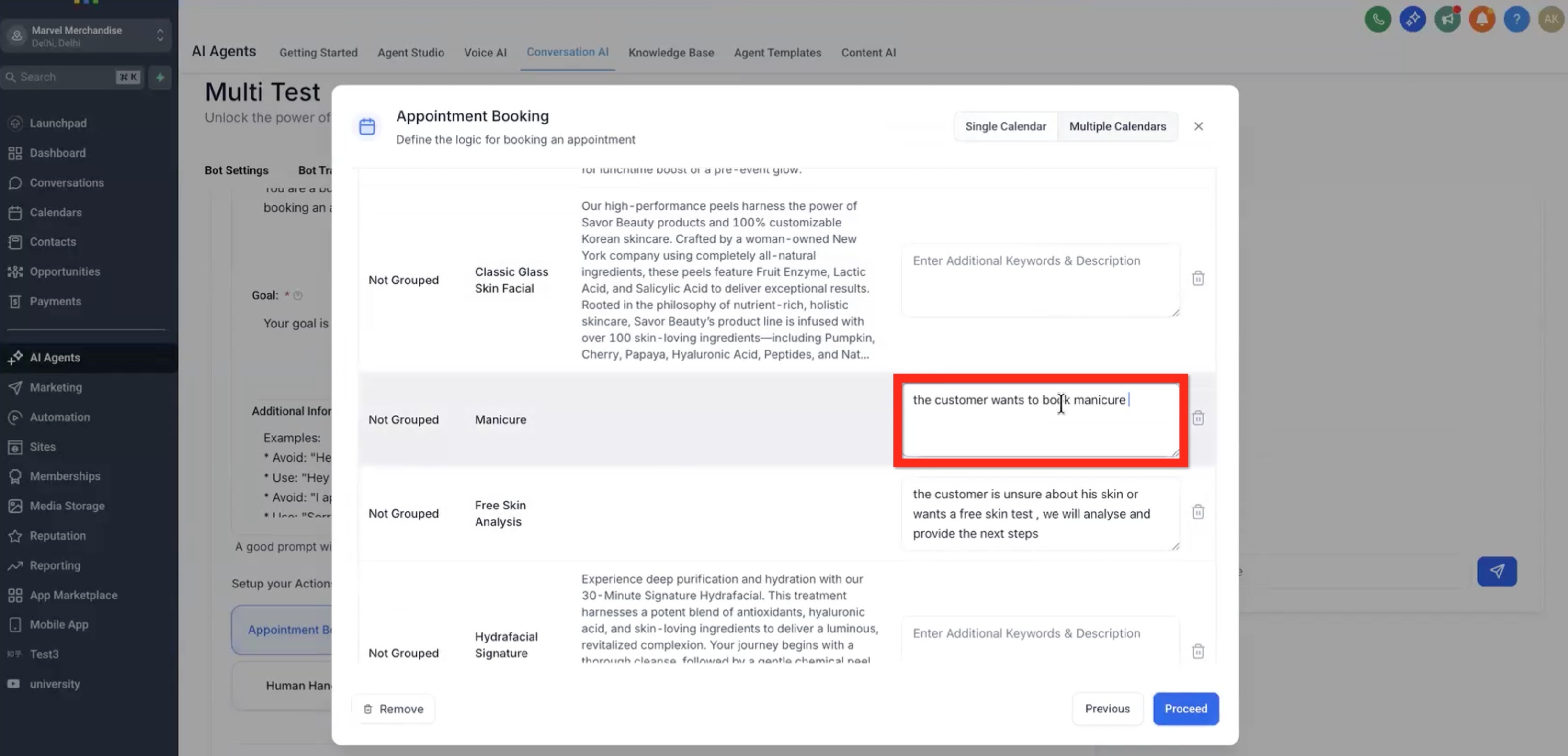 Multiple Calendars Support allows your AI Appointment Booking Bot to route booking requests to the correct calendar based on the customer’s intent. Instead of limiting your bot to a single calendar, you can now configure several calendars—each representing a service, department, or specialist—and let the AI automatically determine which one to use.