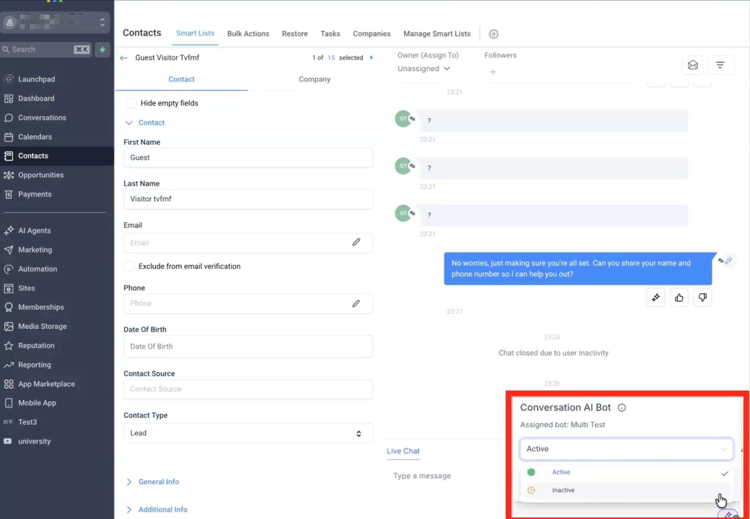 Conversation AI - Bot Inactive (Sleep) Conditions