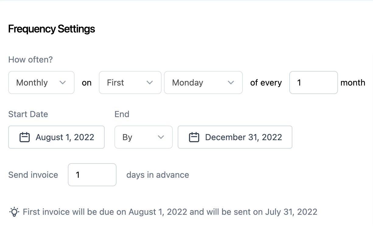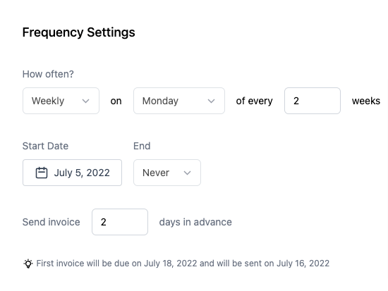 This can be very useful if you sell products on a subscription basis; you may want to send them an invoice every month or so for the amount due in advance.