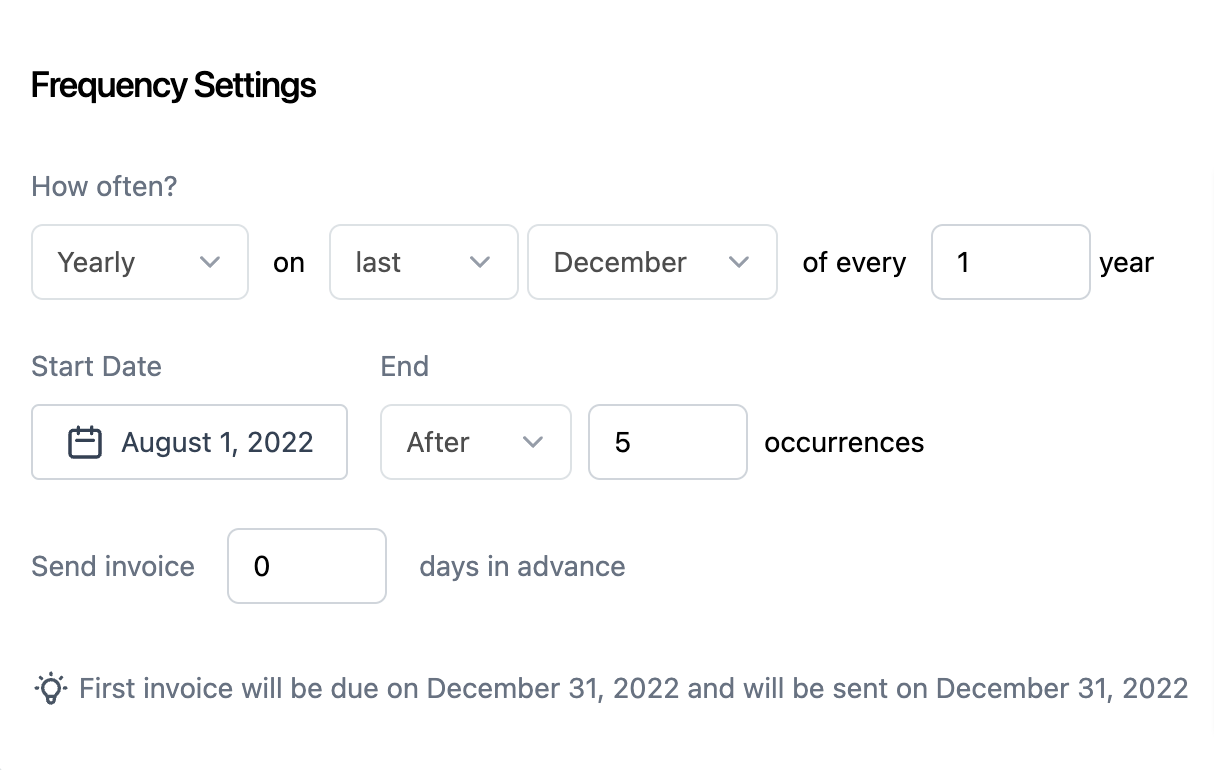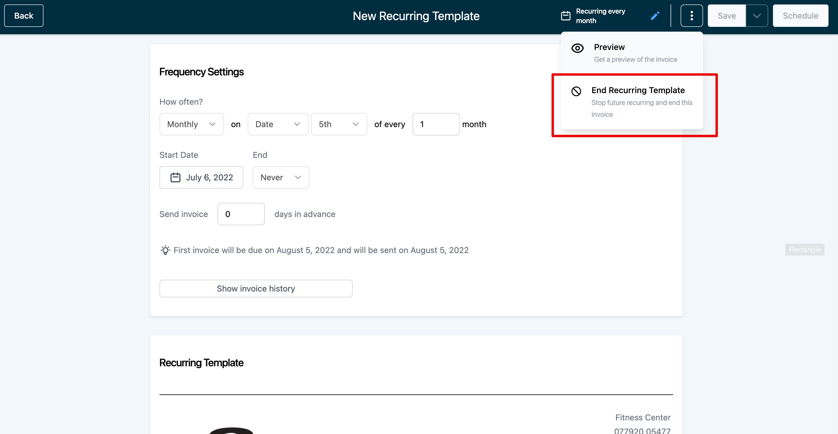 The user also has the option to end the recurring invoice from inside the invoice builder.