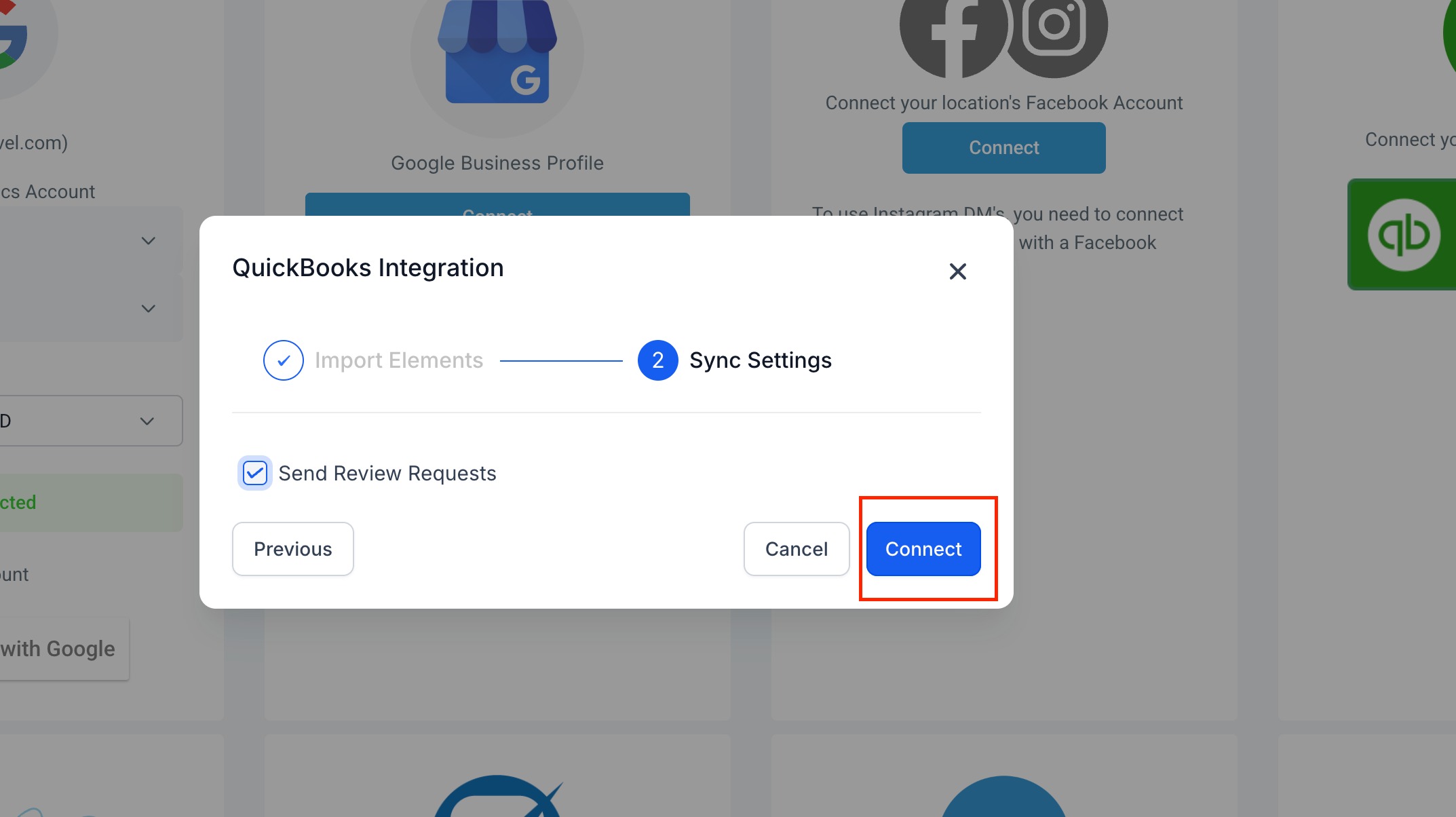 Click Connect and log in using your QuickBooks credentials