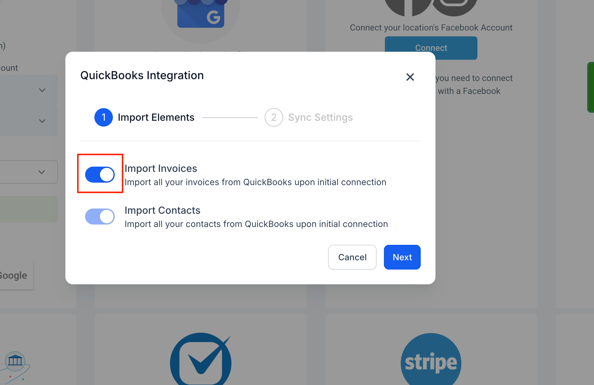 (Optional) Enable Import Invoices to bring in historical QuickBooks invoices