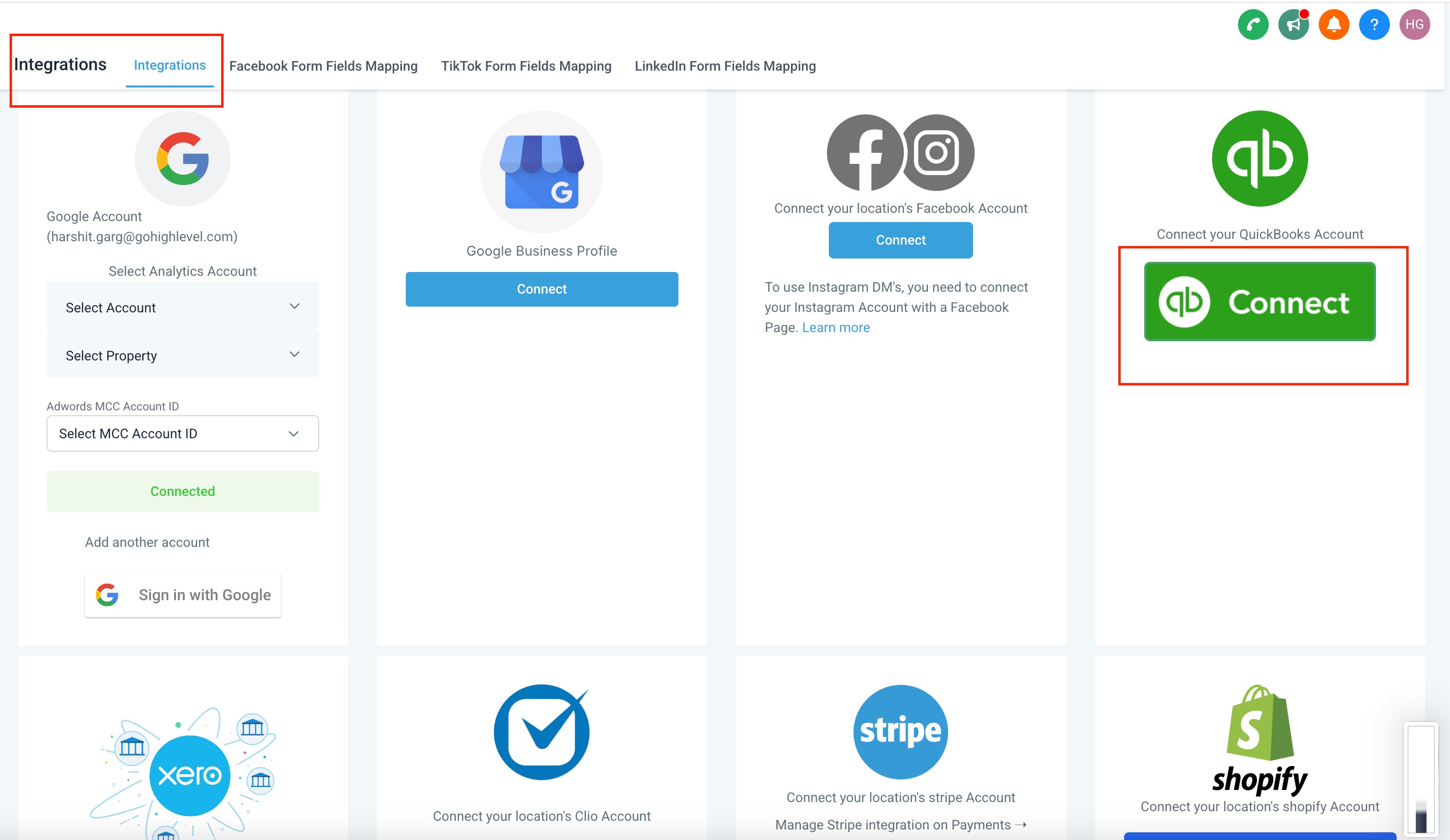 Navigate to Settings → Integrations