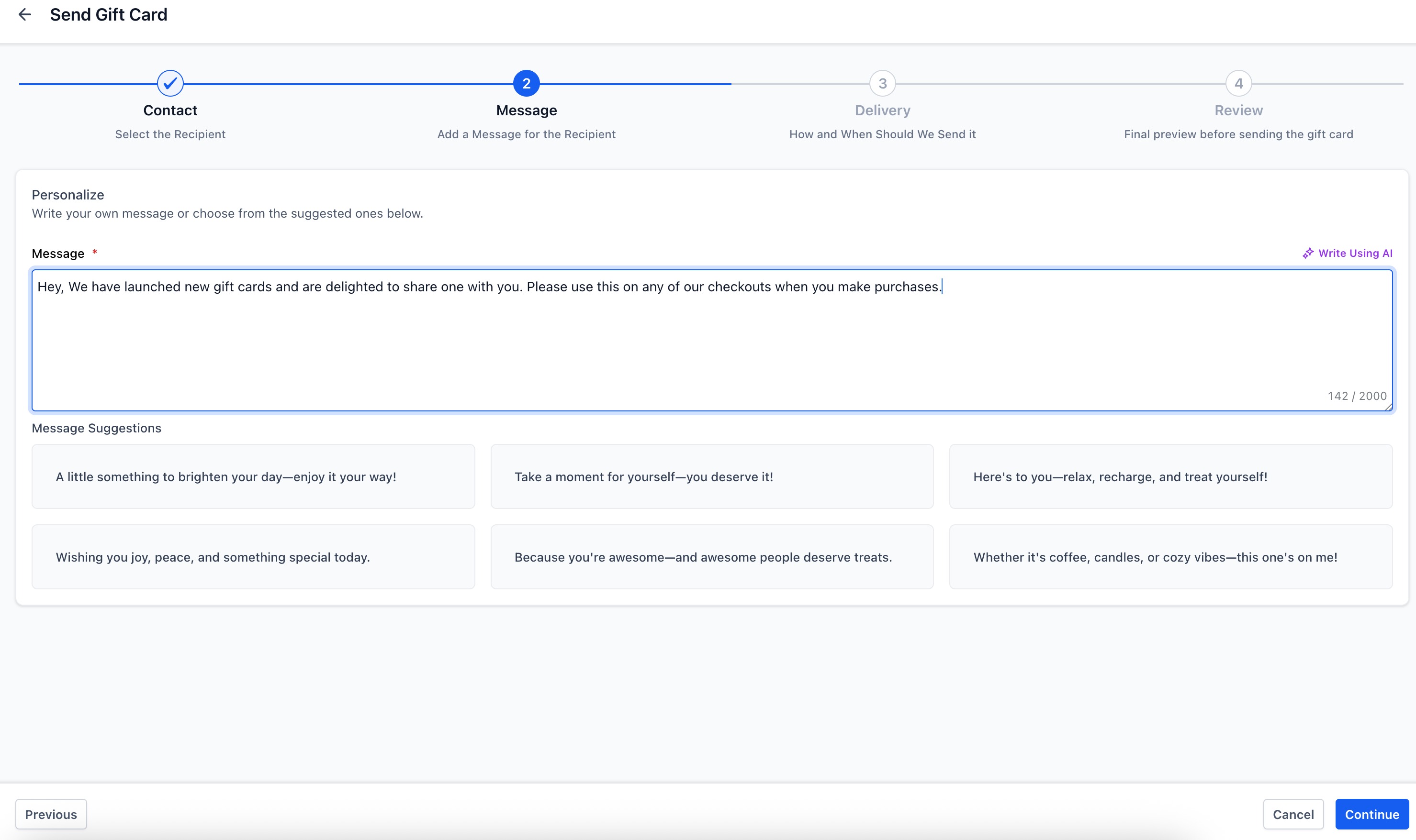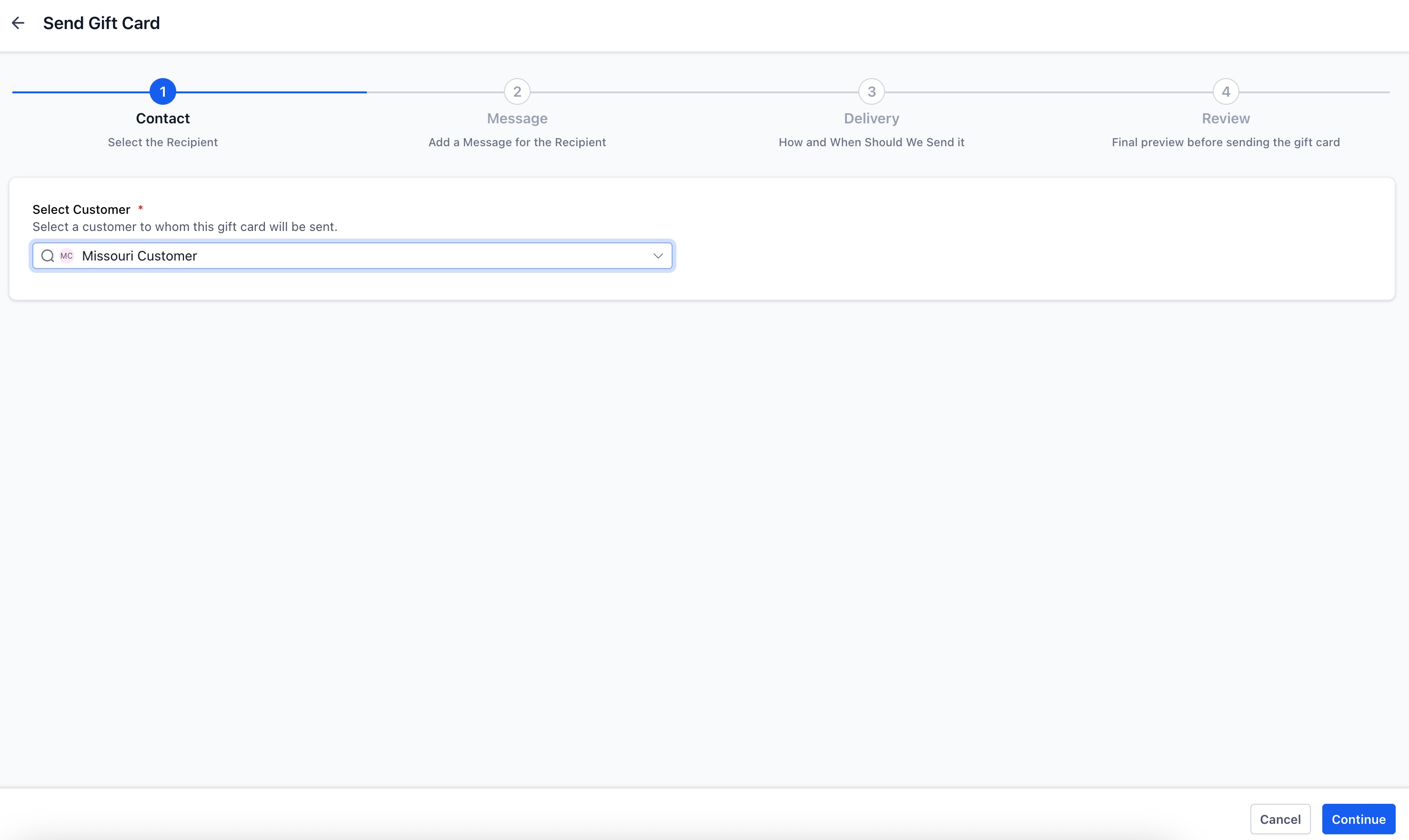 Send Gift Cards directly to contacts without collecting payment (great for promotions or service recovery).