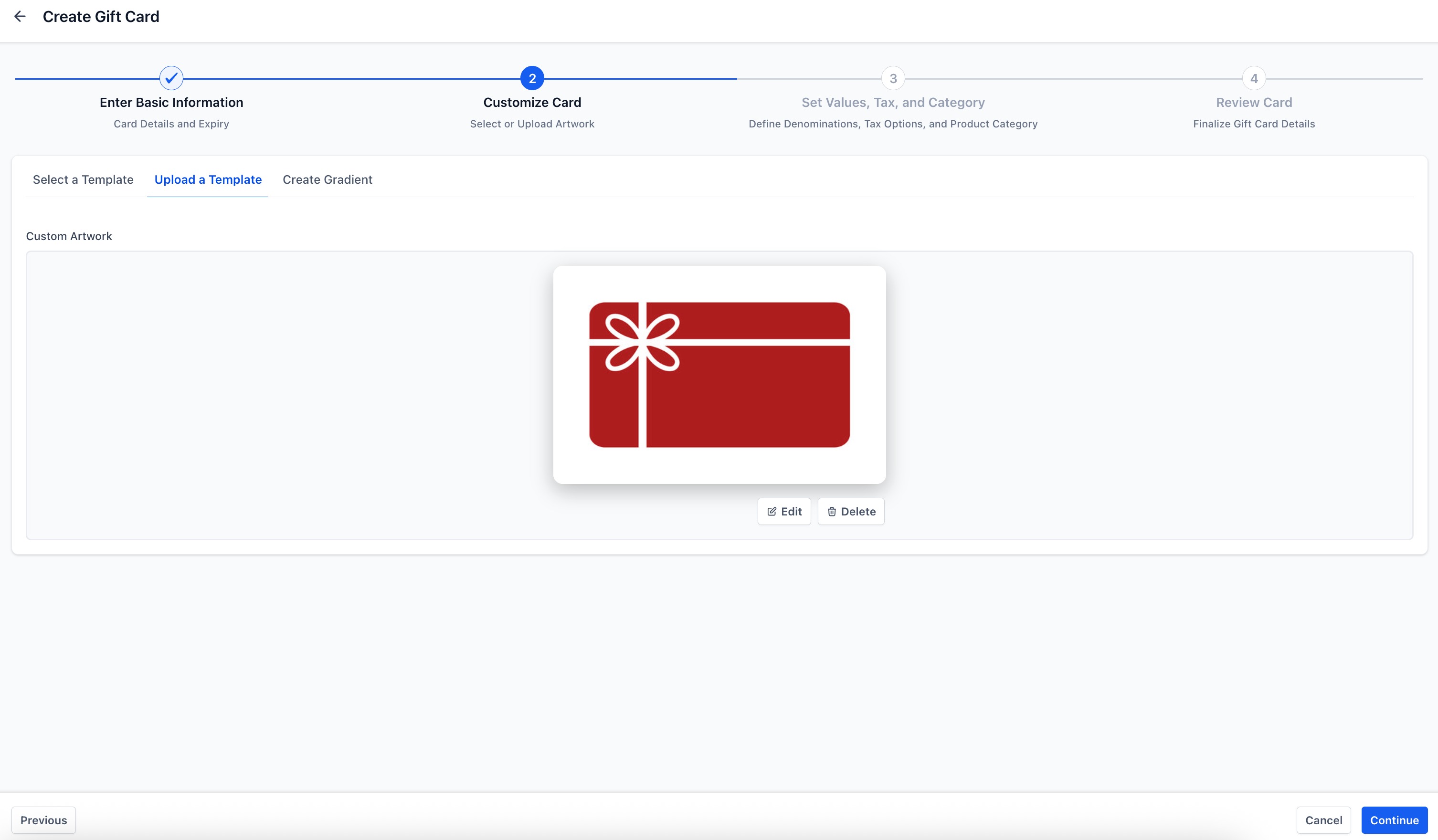 (Optional) Artwork and terms & conditions for your Gift Card branding.