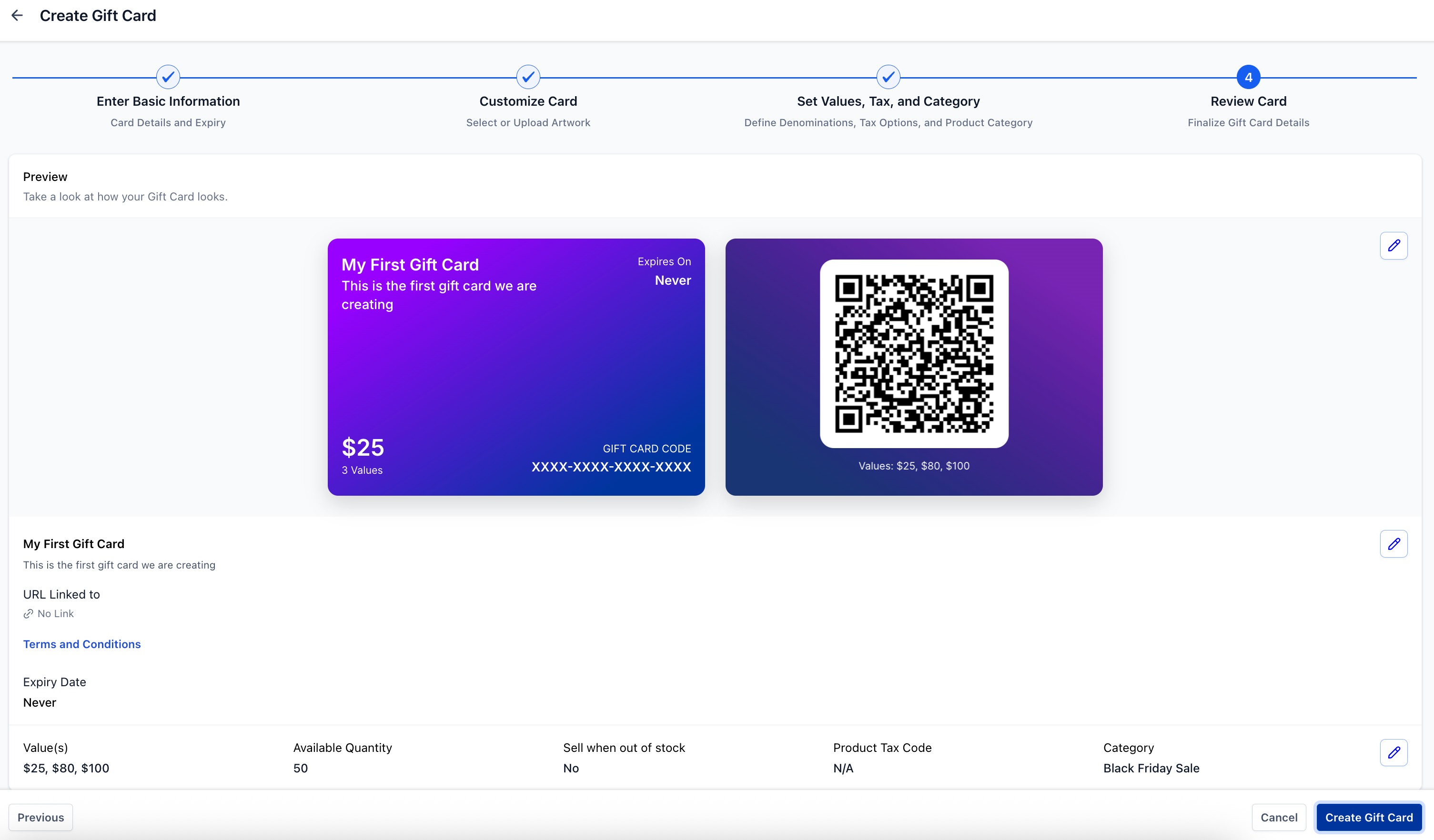 Click 'Create Gift Card'.