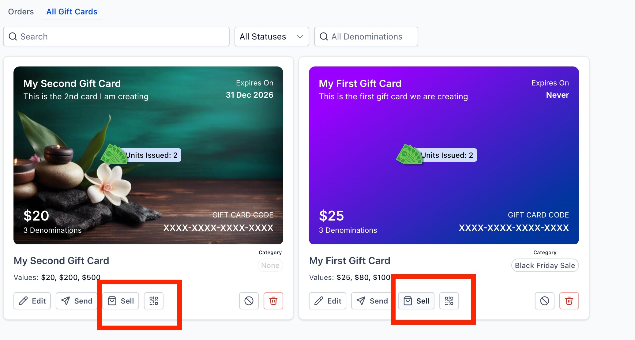 The Gift Card Orders page is your central hub for every card issued or purchased.
