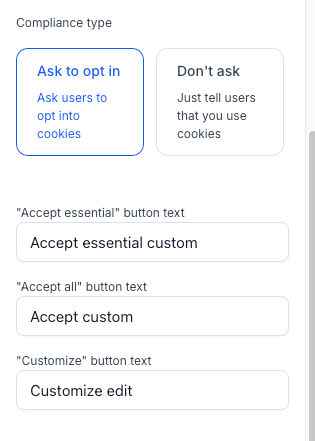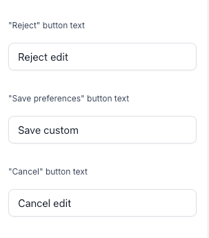 You can now edit the text for all buttons in both the banner and preferences popup to match your brand and localization needs: