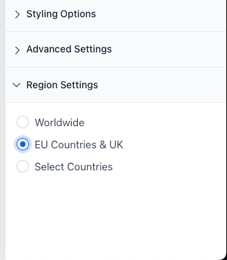You can now control where the cookie banner appears based on the visitor’s location: