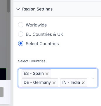 Select Countries – Manually select specific countries where the banner should appear.