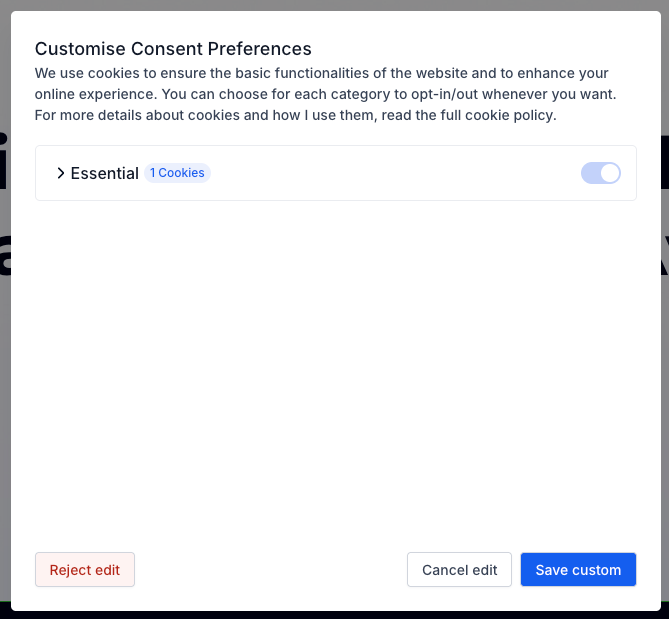 Reject – Accepts only essential cookies.