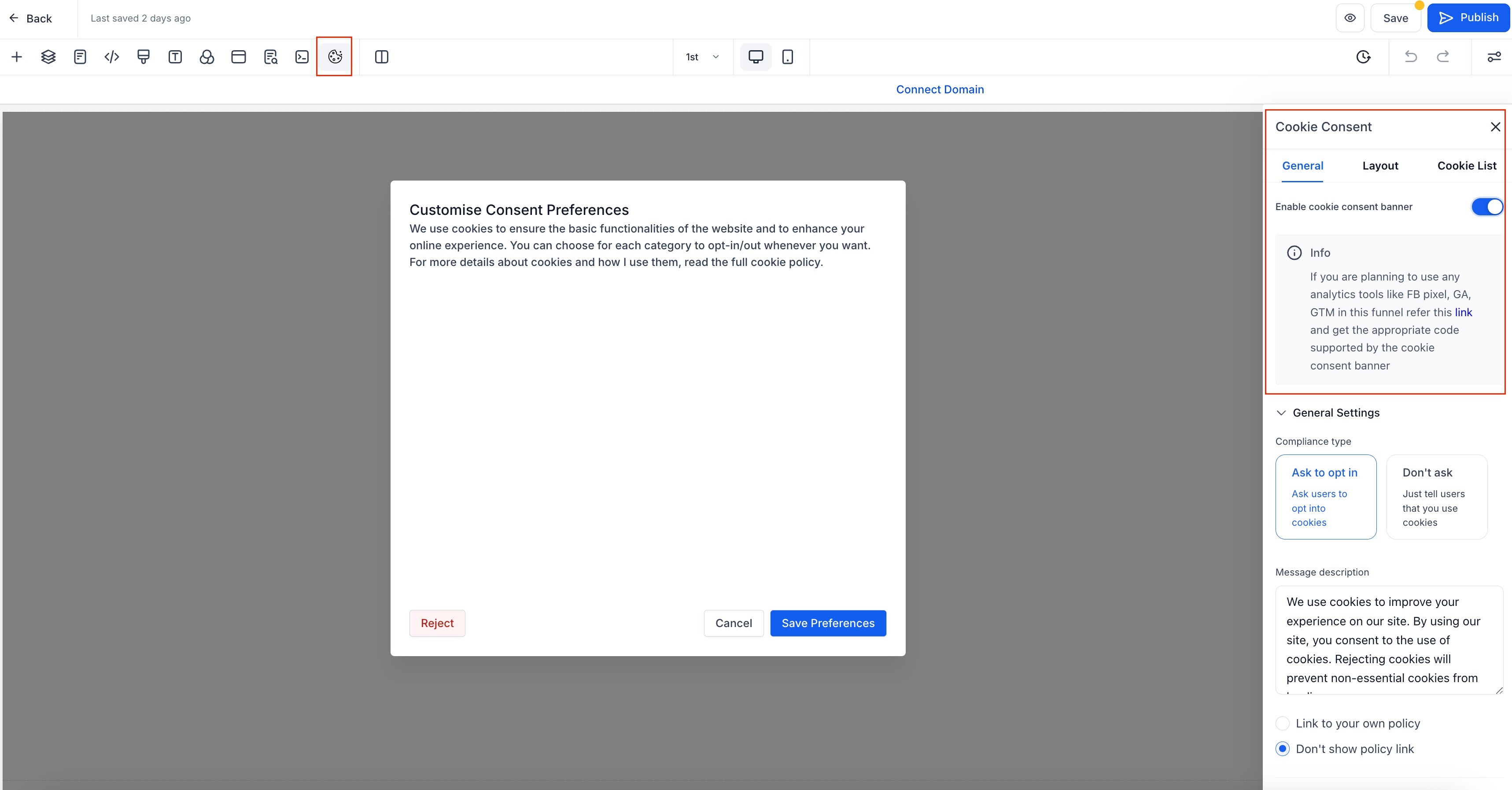 How to Use the Cookie Consent Banner in Funnels & Websites
