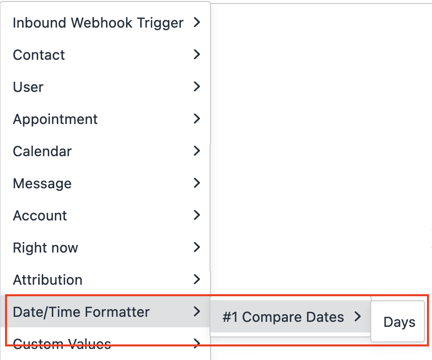 If you select a system field like Specific Date, Current Date, Contact's date type standard or custom fields, or Appointment start/end date, the tool will auto-detect the format and preselect it. You must manually select the matching format if you choose a Custom Value or an Inbound Webhook Trigger.