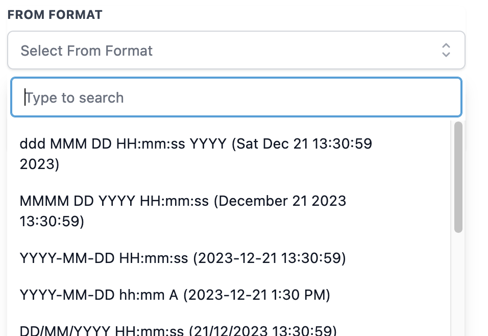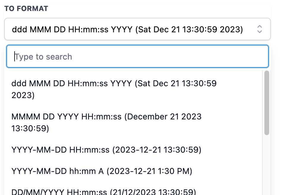 Select the desired output date and time format from the list of available formats. This is the format the original date and time will be converted to.