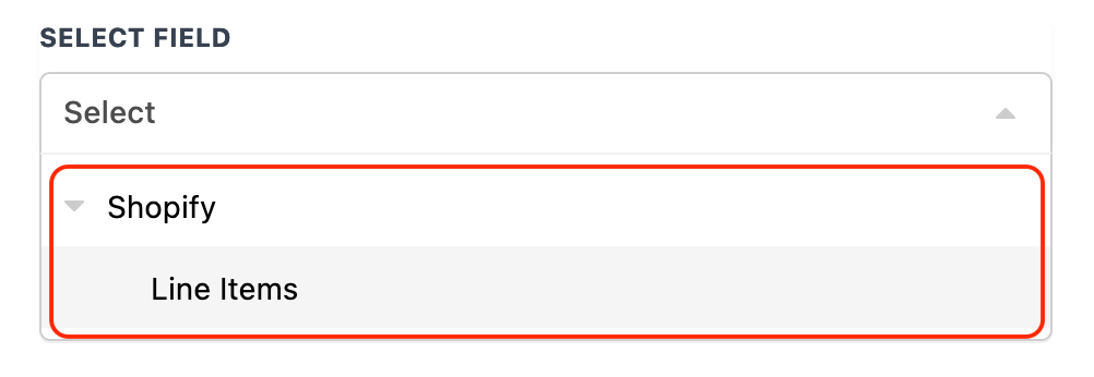 Select Shopify > Line Items