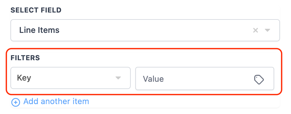 The list of key variables from the selected array field are listed here. In this example, the list of shopify line items key variables are listed.