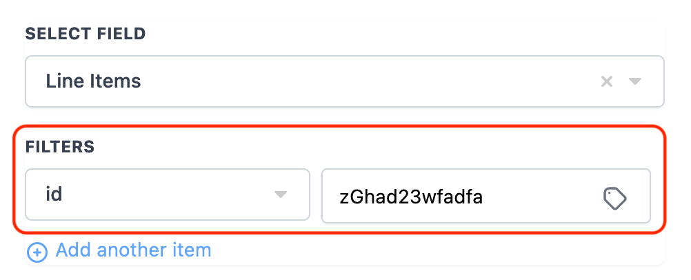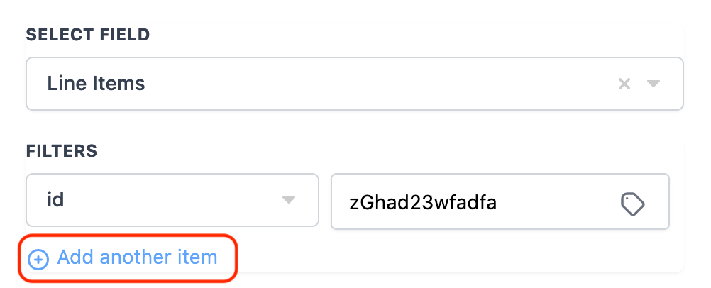 In the below example we are using Shopify Order Placed Trigger and checking if a product with product id "zGhad23wfadfa" is part of the shopify line items