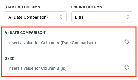 To update the desired columns, select the starting and ending columns.
