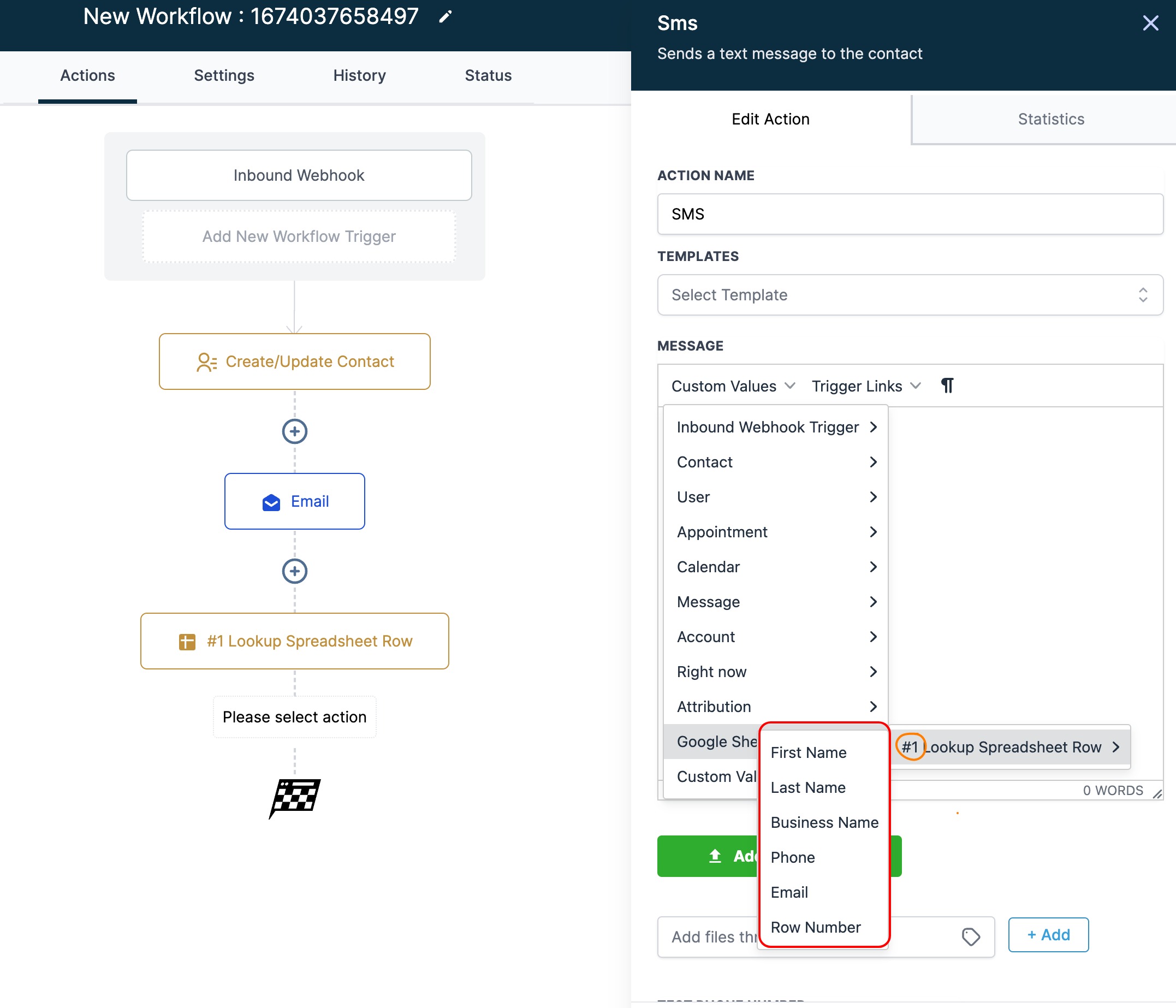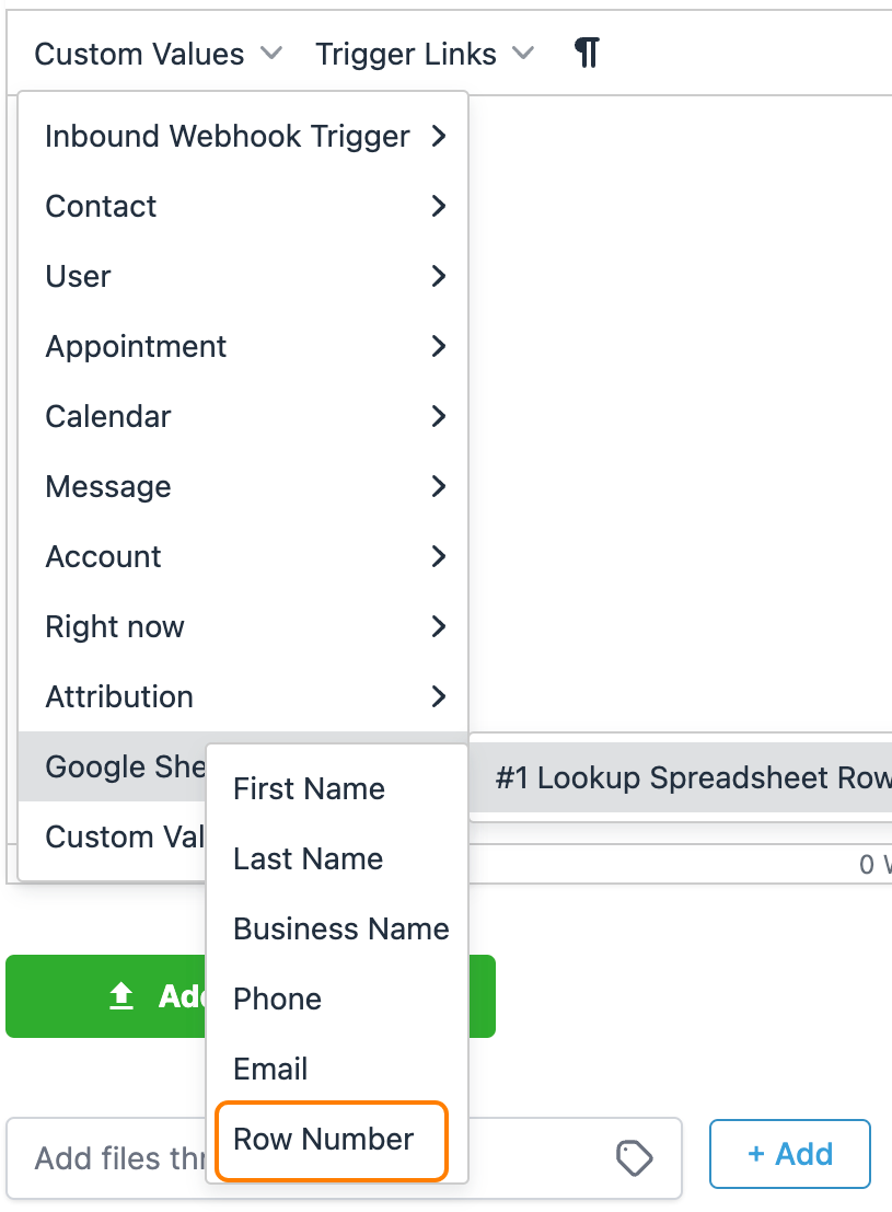 - Using our system, you can easily Lookup any row in your sheet and use the custom values associated with that row within your workflow.