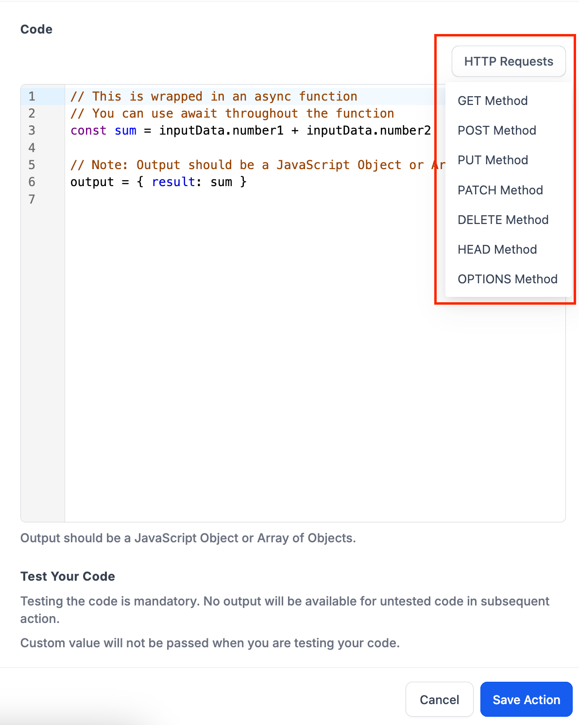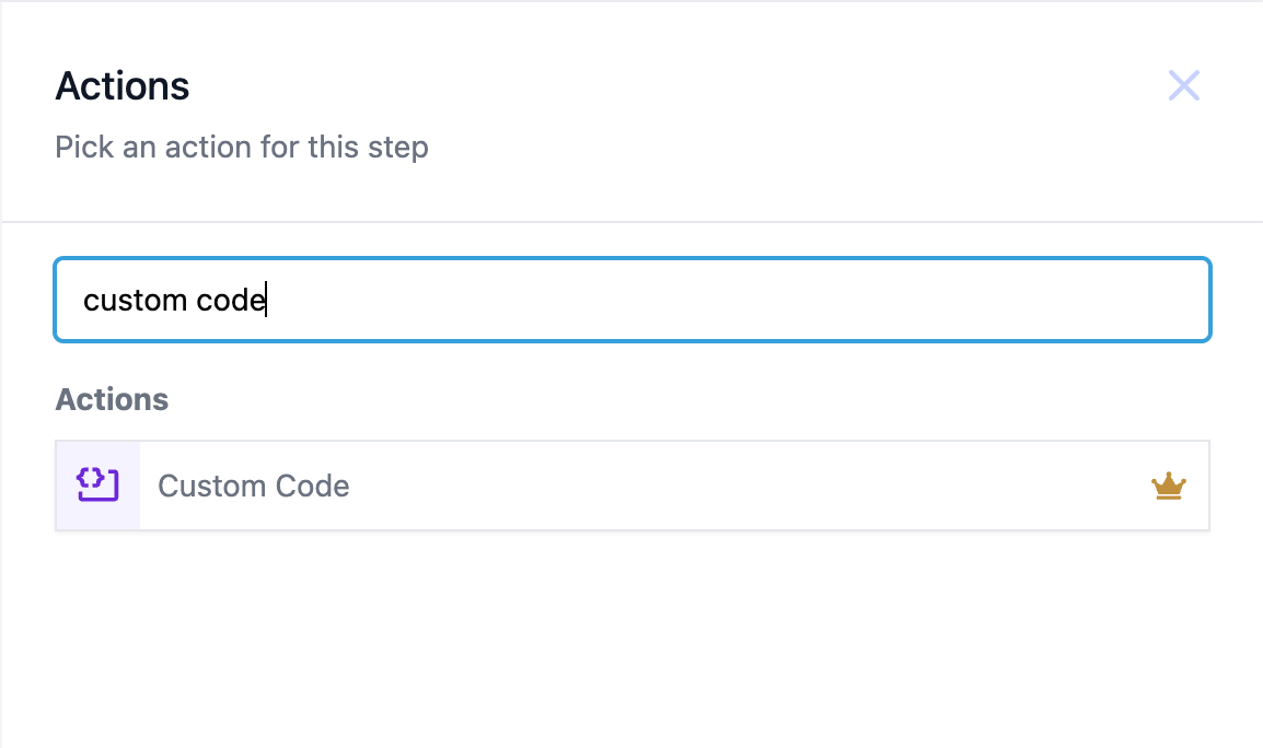 Custom Code is a powerful tool that will allow users to create custom logic they want to achieve and are not available currently. This provides flexibility and control beyond the pre-built actions, enabling users to automate complex tasks and integrate with various services not natively supported. This is a Premium Action.