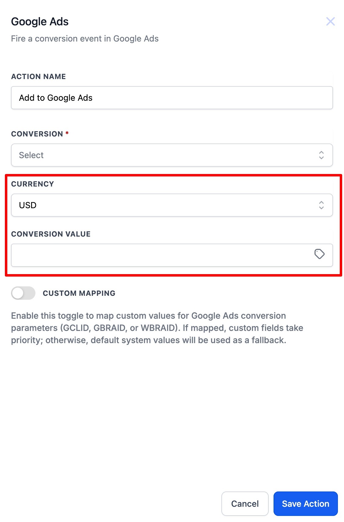 - How to set up the Google Ad Conversion Action
