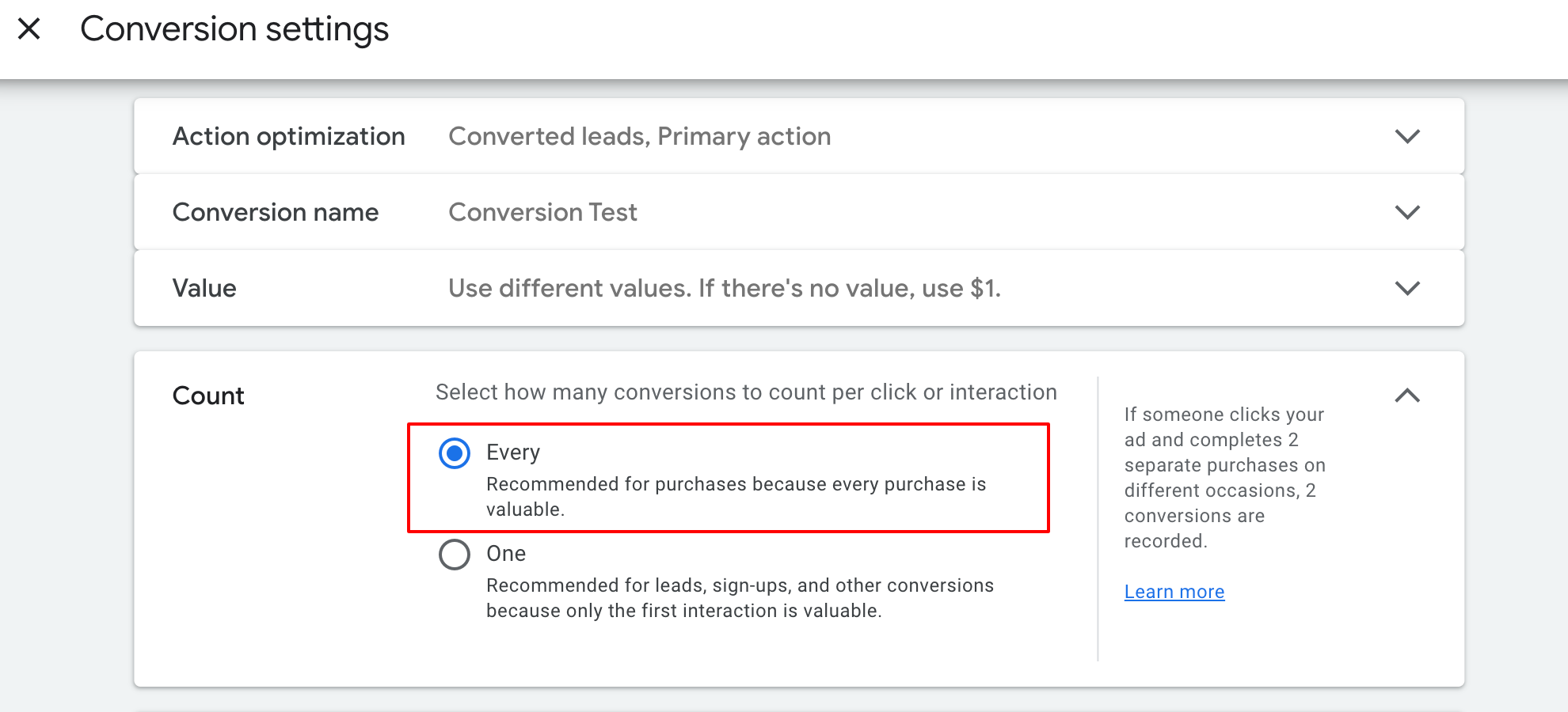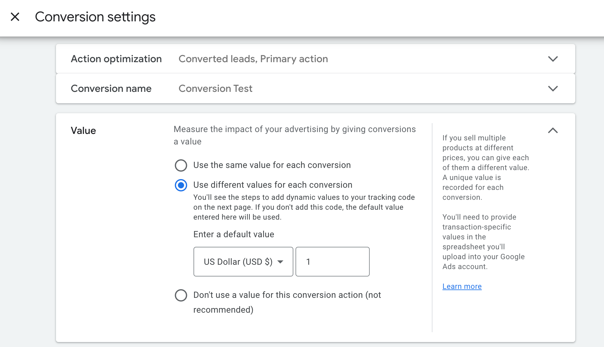 - Step 5: Select the value for your conversion