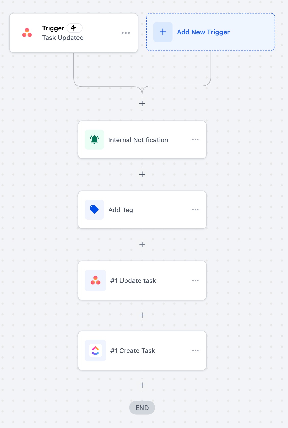 Choose a trigger (e.g., “Task Created” or “Task Updated”).