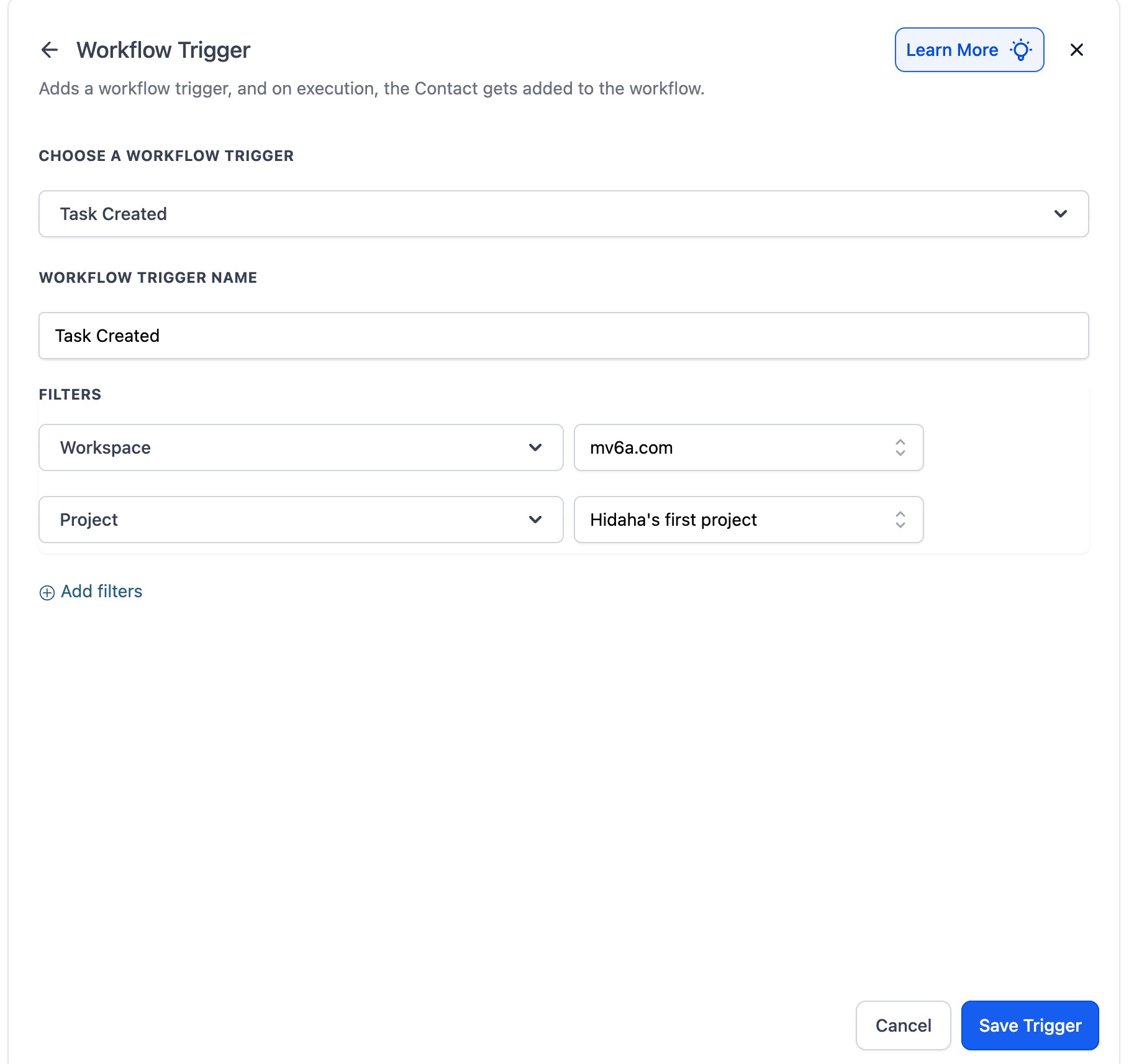 Name your trigger and click Test Trigger to fetch sample task data.