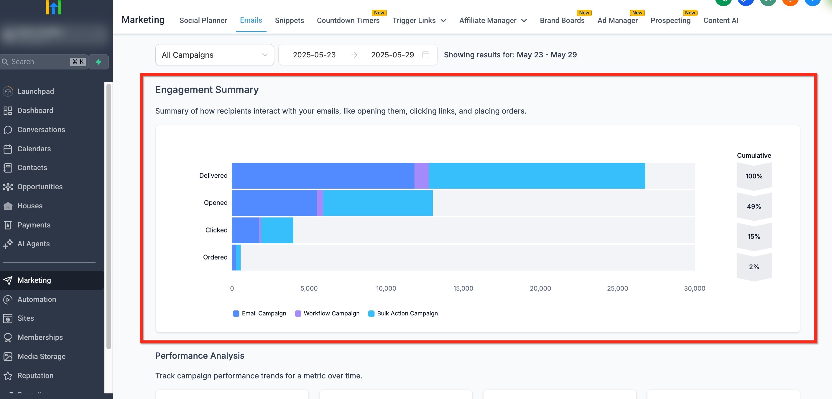 Use this graph to quickly gauge how your emails are performing in terms of delivery, engagement, and conversion.