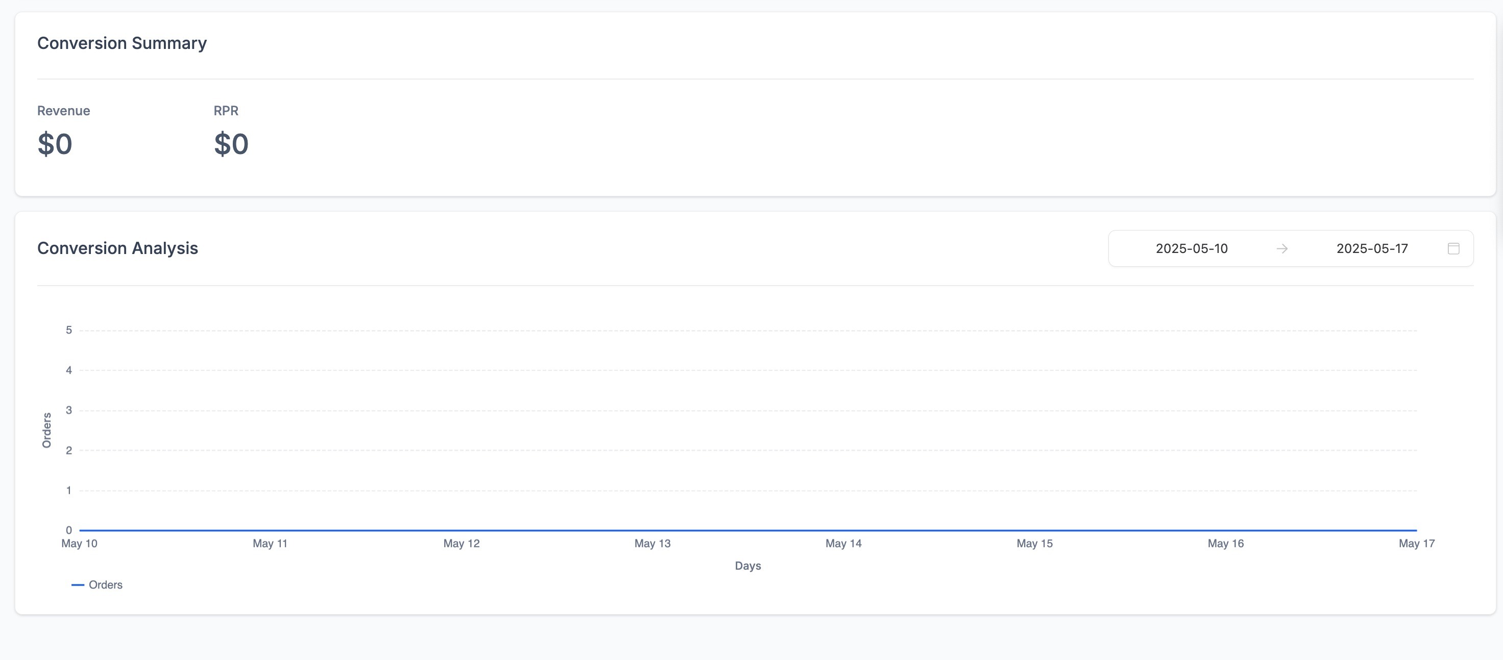 Conversion Analysis Chart: Tracks the number of orders or conversions over time.