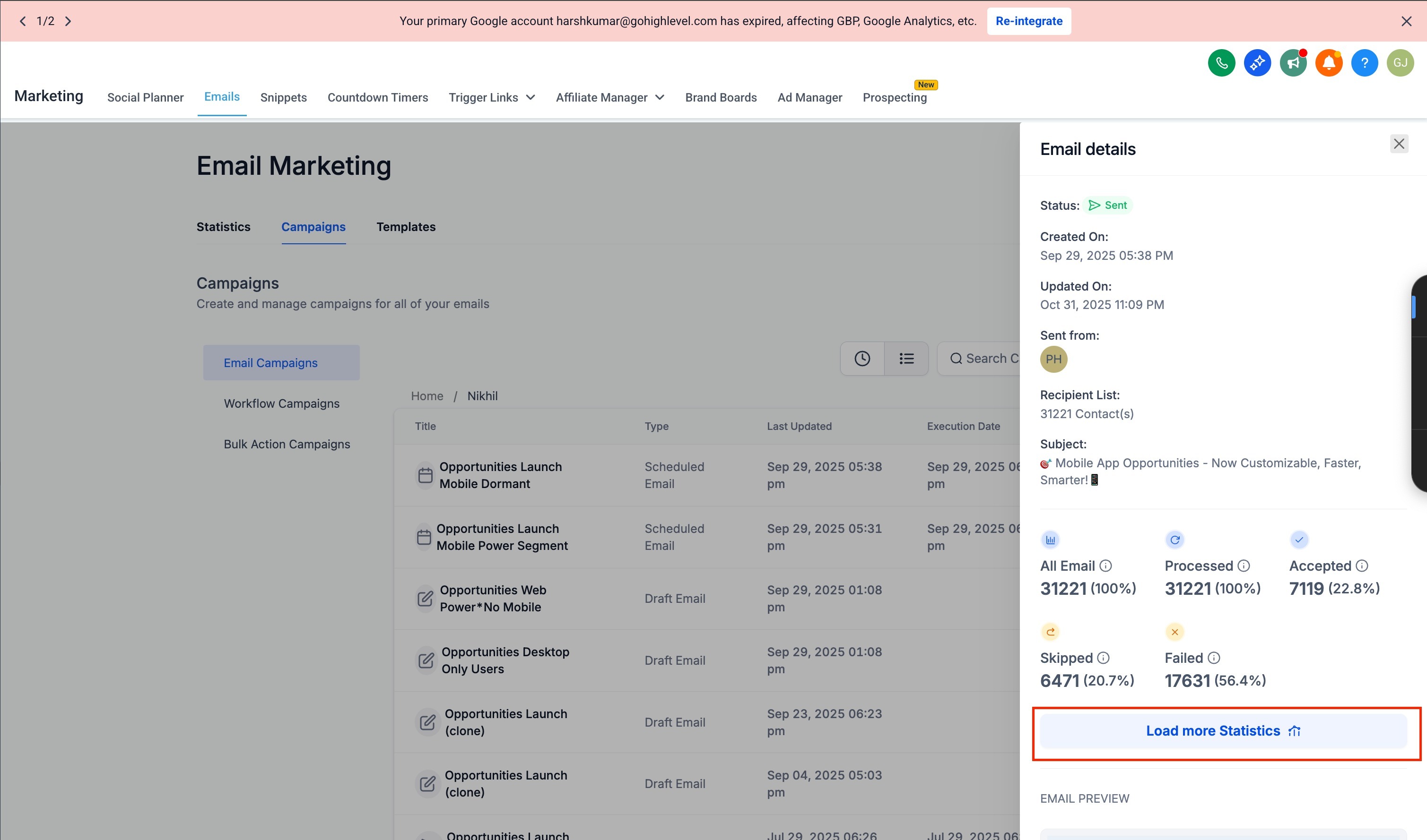 Failed: Emails that encountered sending errors.