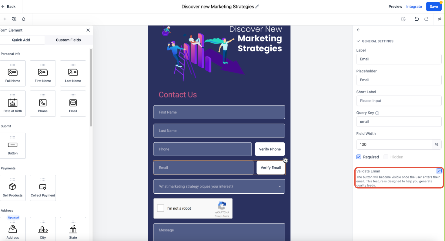 Ensure only legitimate users submit forms by enabling email and phone number validation. This helps: