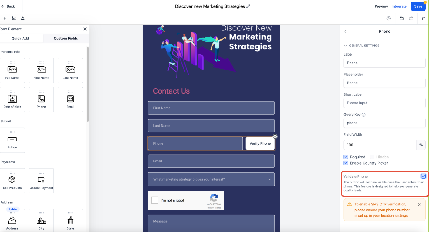 Enhancing form security protects your business from spam, fake contacts, and unnecessary costs. While built-in protections help, adding CAPTCHA, email/phone validation, and geo-restricted SMS permissions further strengthens security. Implement these best practices to ensure only genuine submissions reach your system.