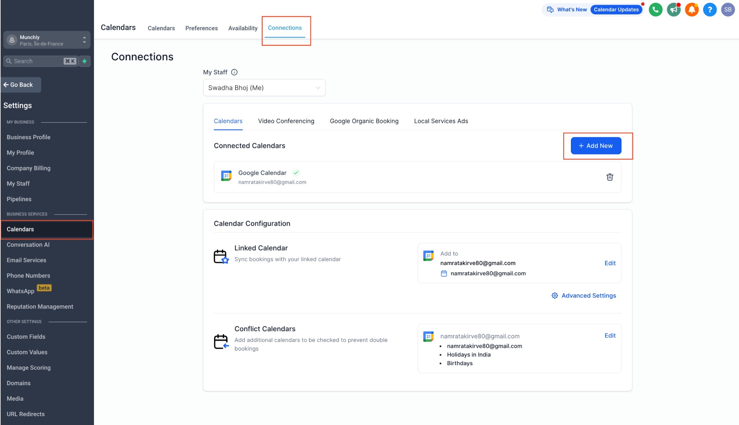 1. Navigate to 'Calendars' > 'Calendar Settings' > 'Connections.'