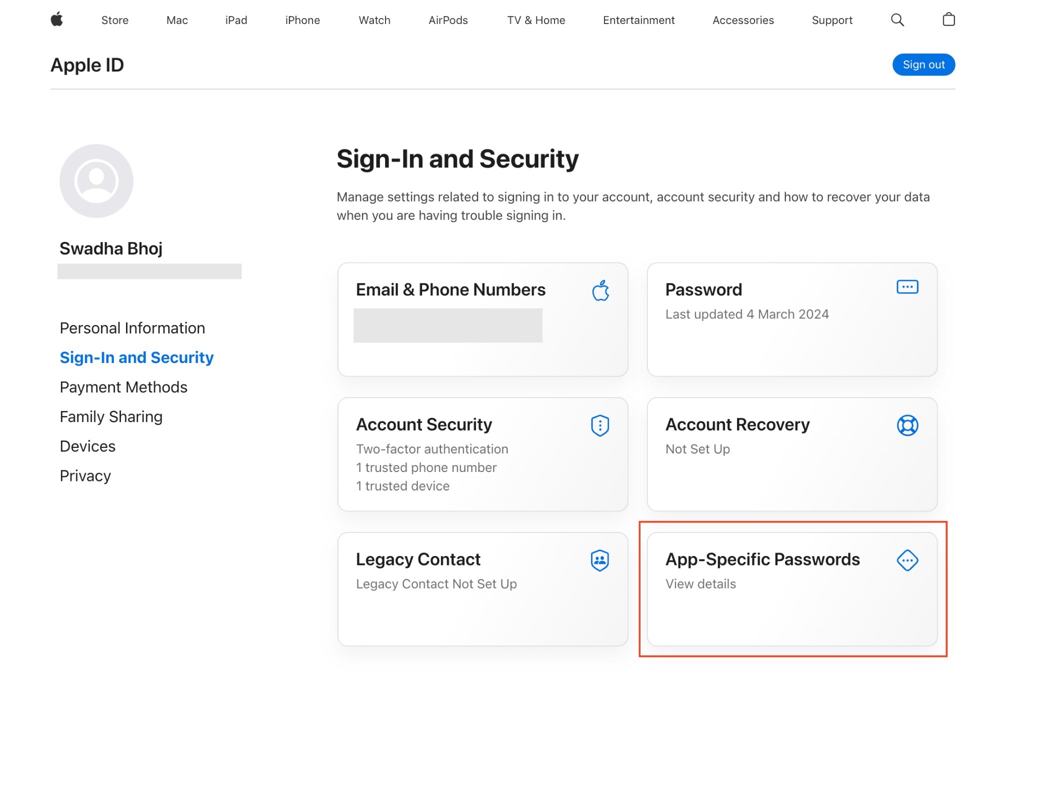 3. In the App-Specific Passwords section, choose 'Generate Password.'