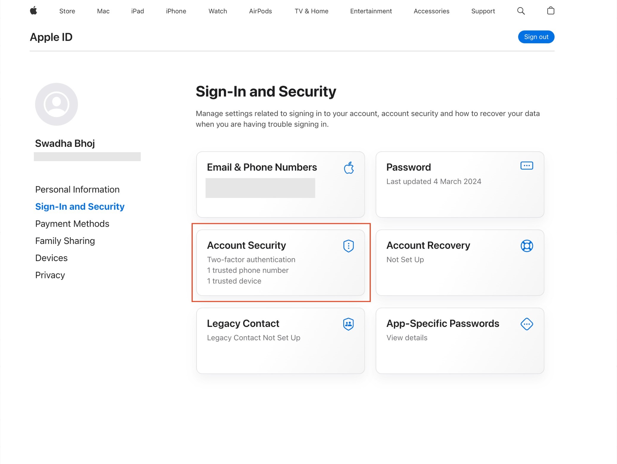 2. Enable two-factor authentication under the Security section if you haven't already done so.