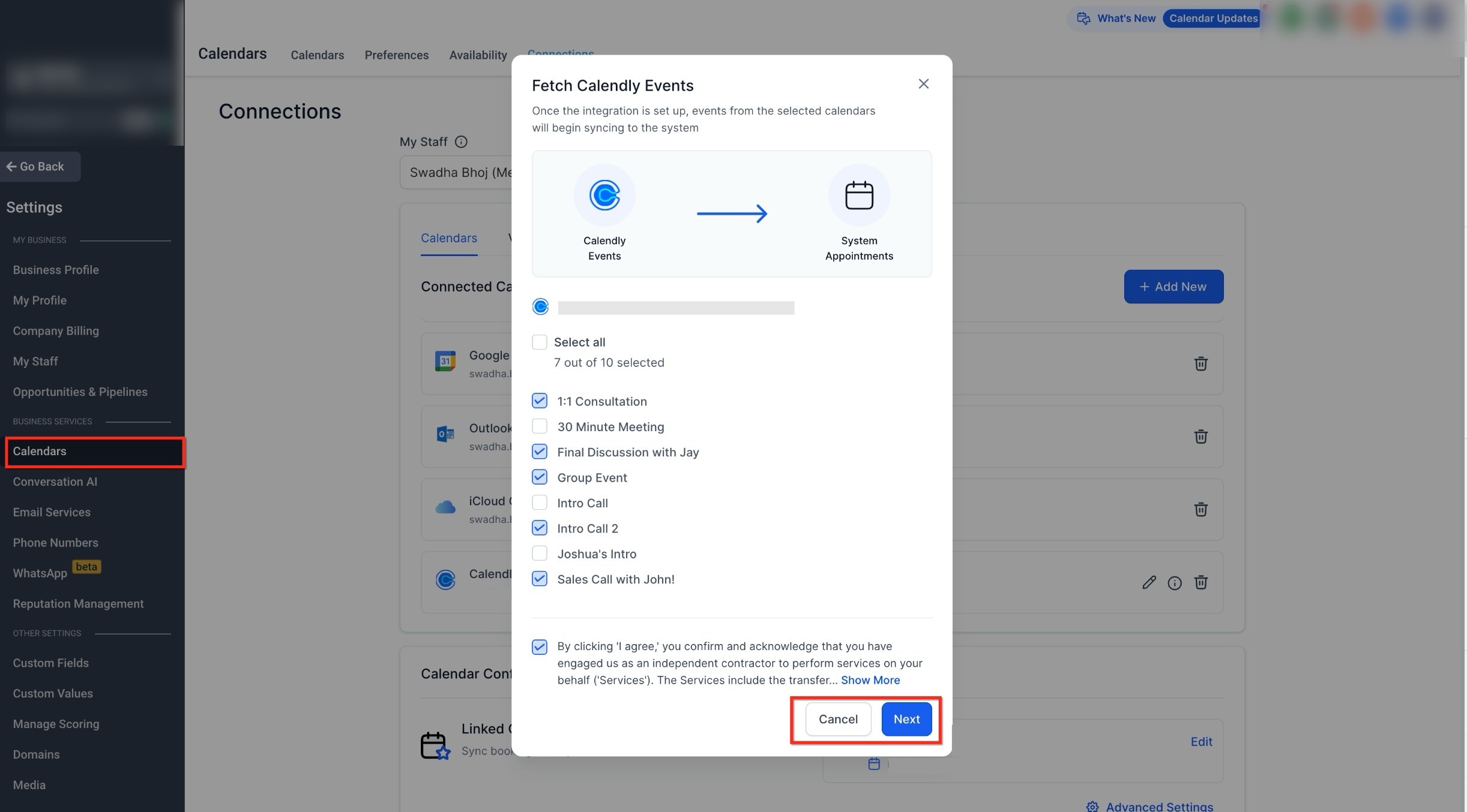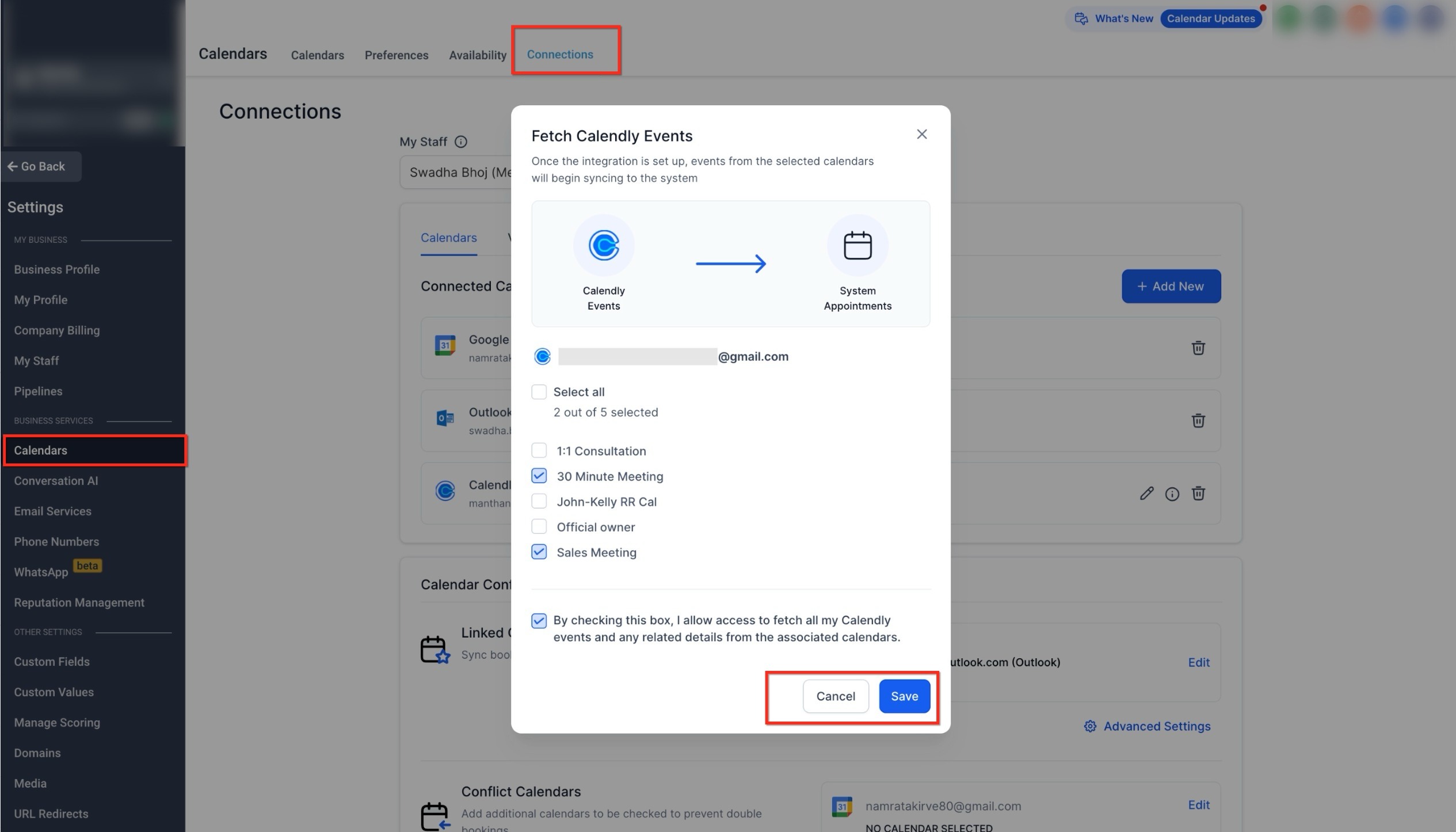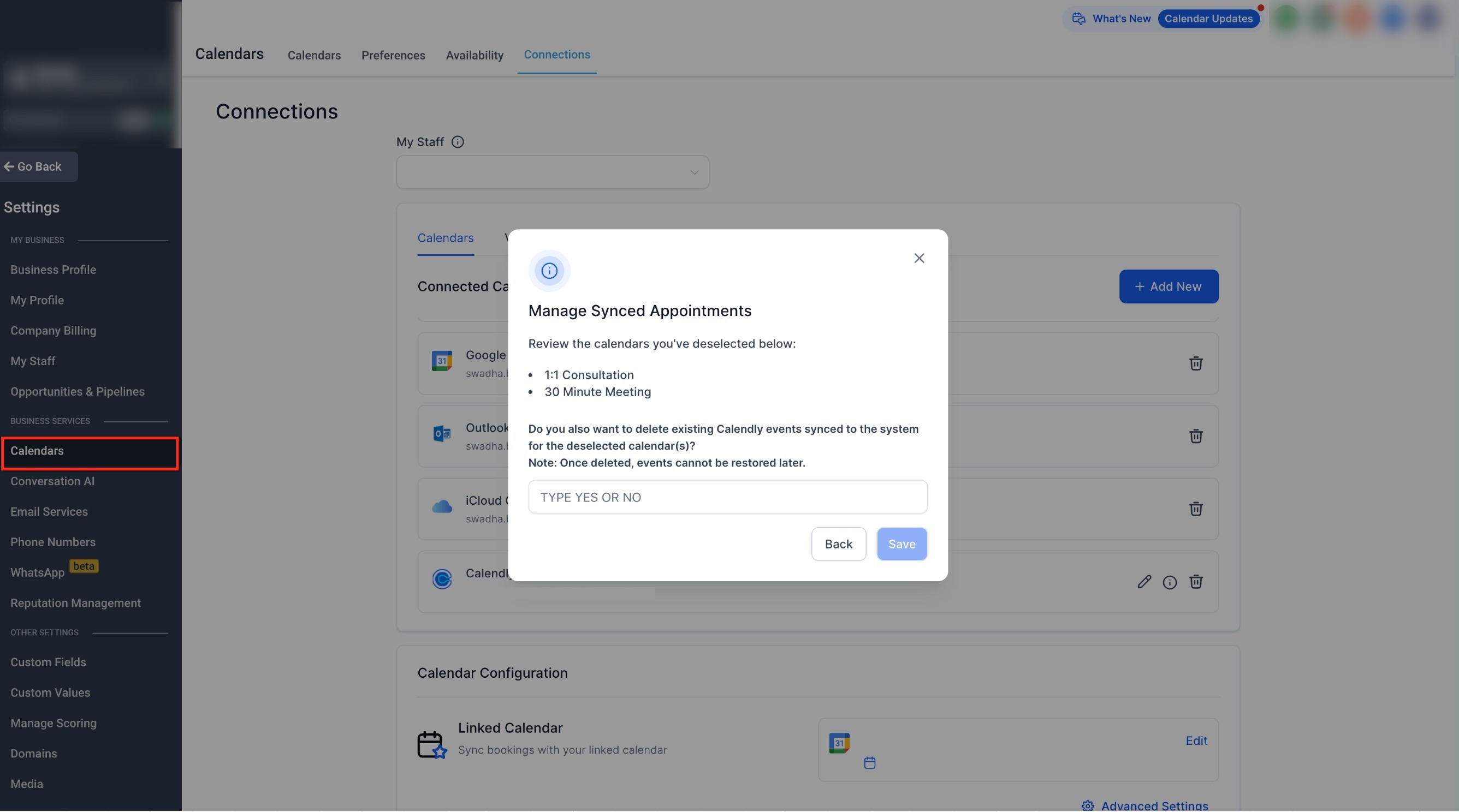 Managing Connected Calendars