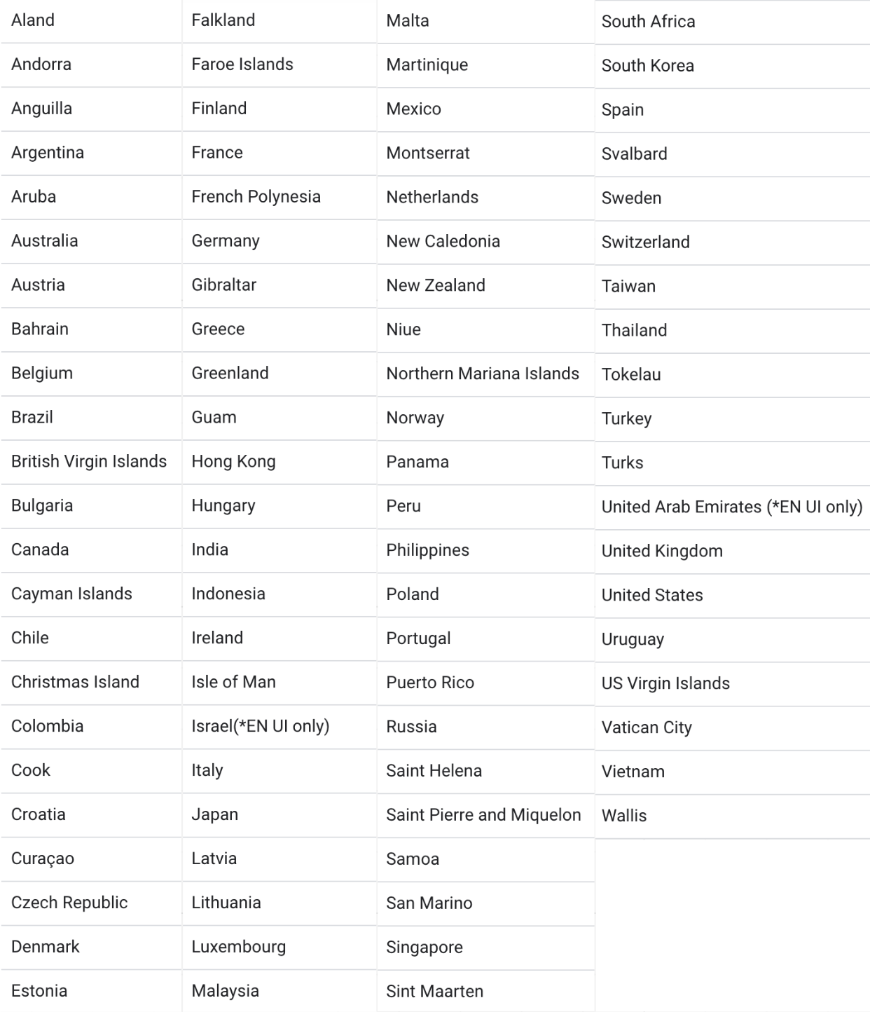 United Arab Emirates (*EN UI only) | AE |