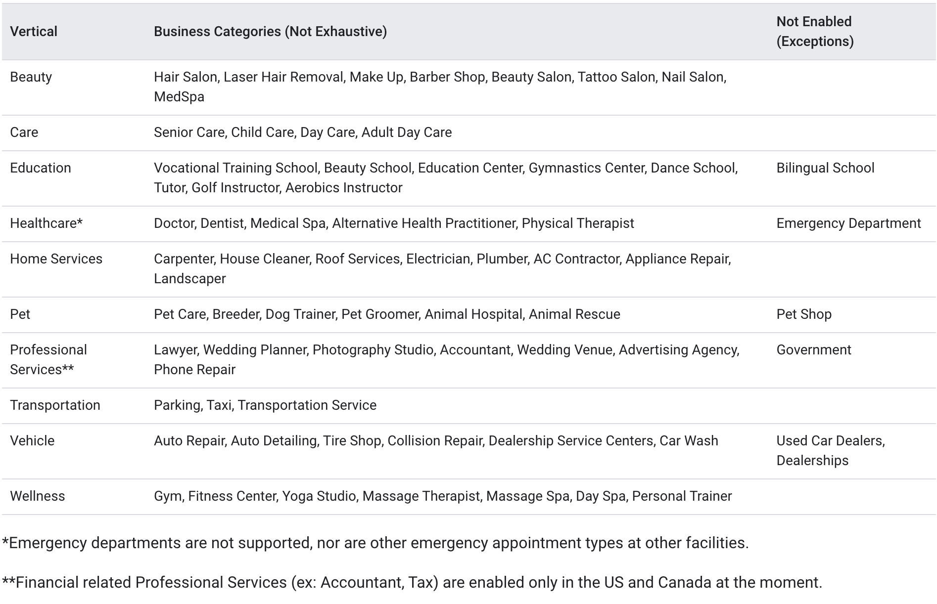 Following are the Business verticals this is applicable for with some exclusions: