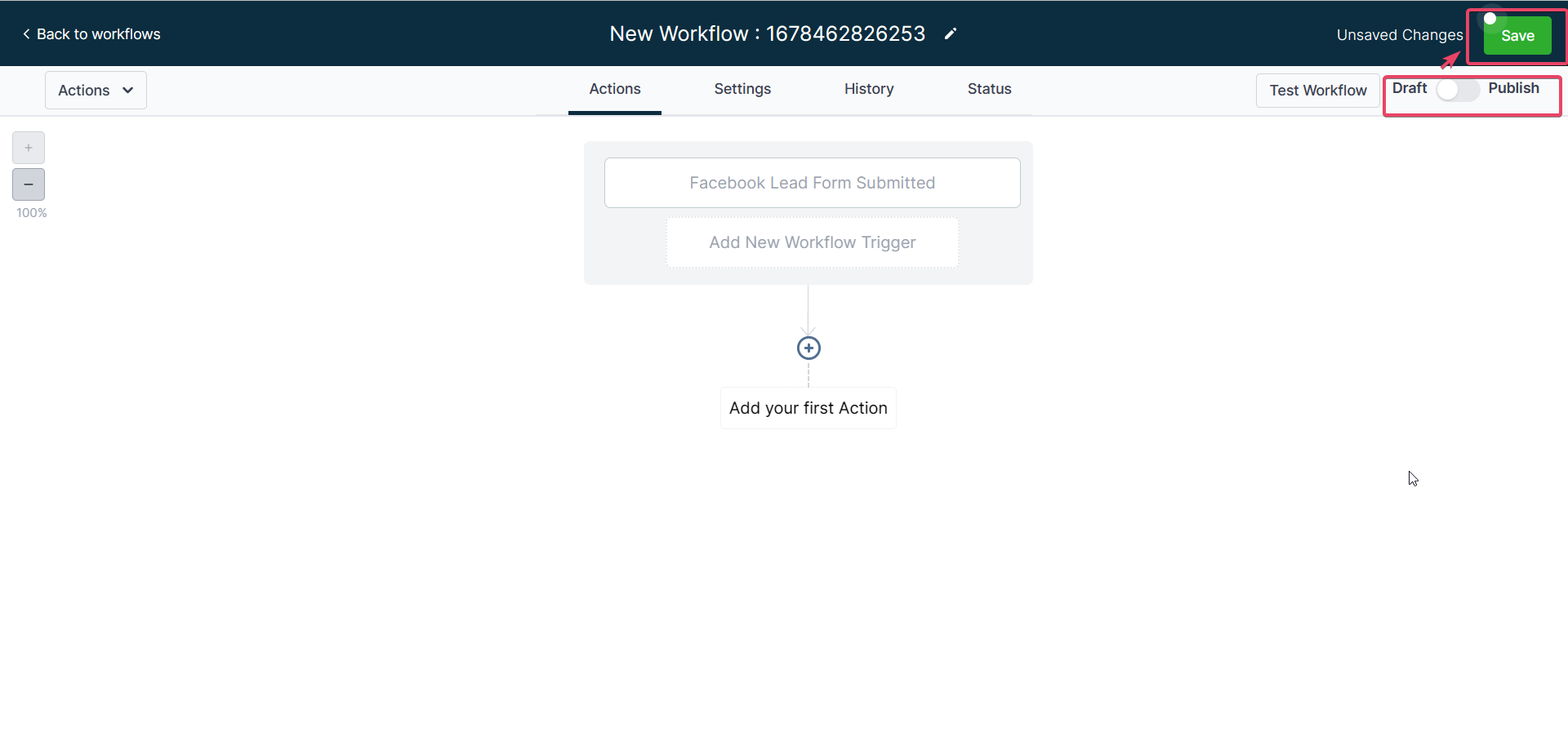 - Make sure to save your actions and then save and Publish the Workflow.