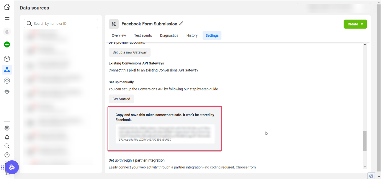 Make sure to save your actions and then save and Publish the Workflow. - Navigate to your Facebook Events Manager> Data Sources> Settings> Scroll down and click on Generate Access Token.