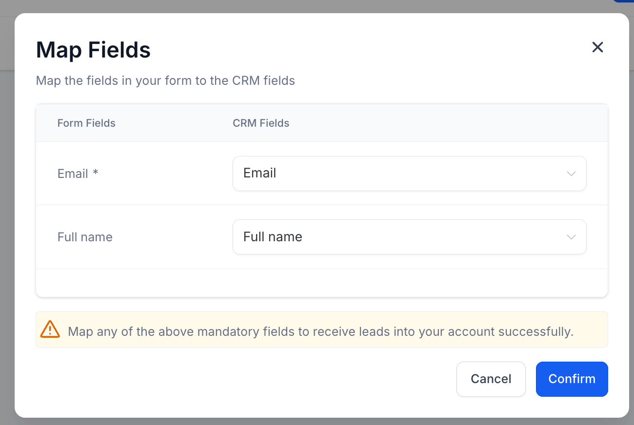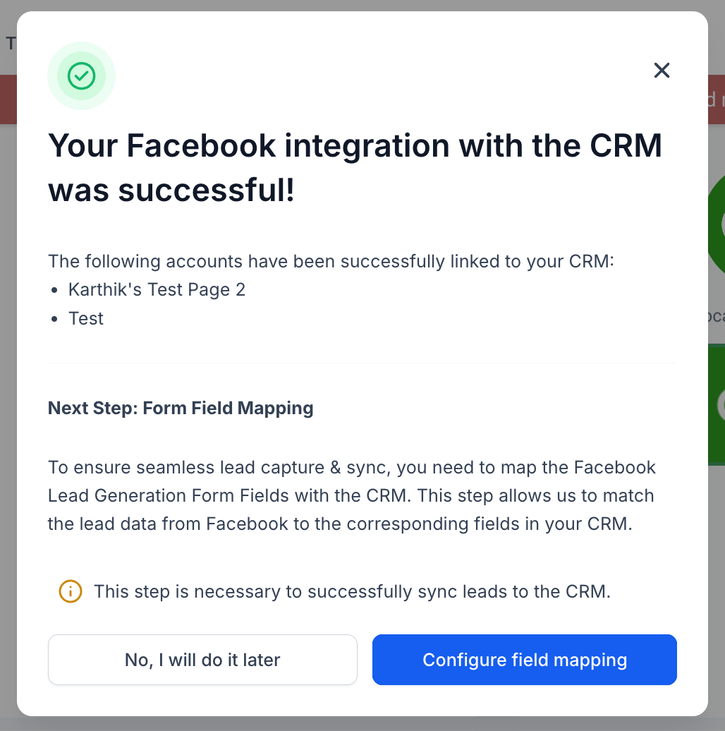 Step 4: Map your Facebook Lead Ad form fields to Contacts' custom fields.