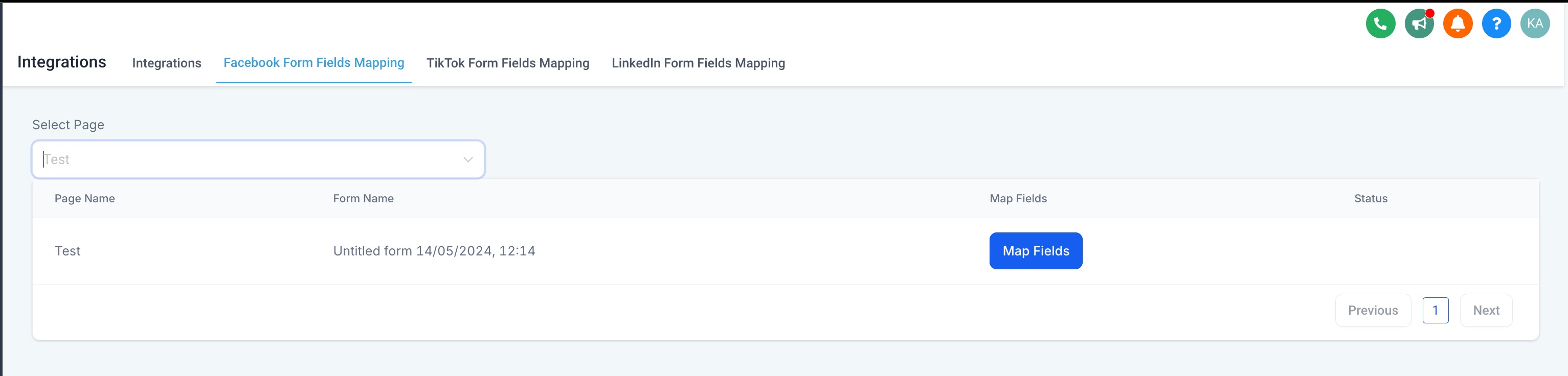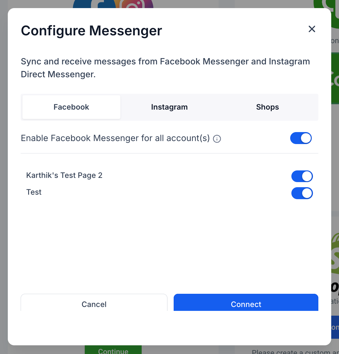 Facebook Integrations - Manage pages