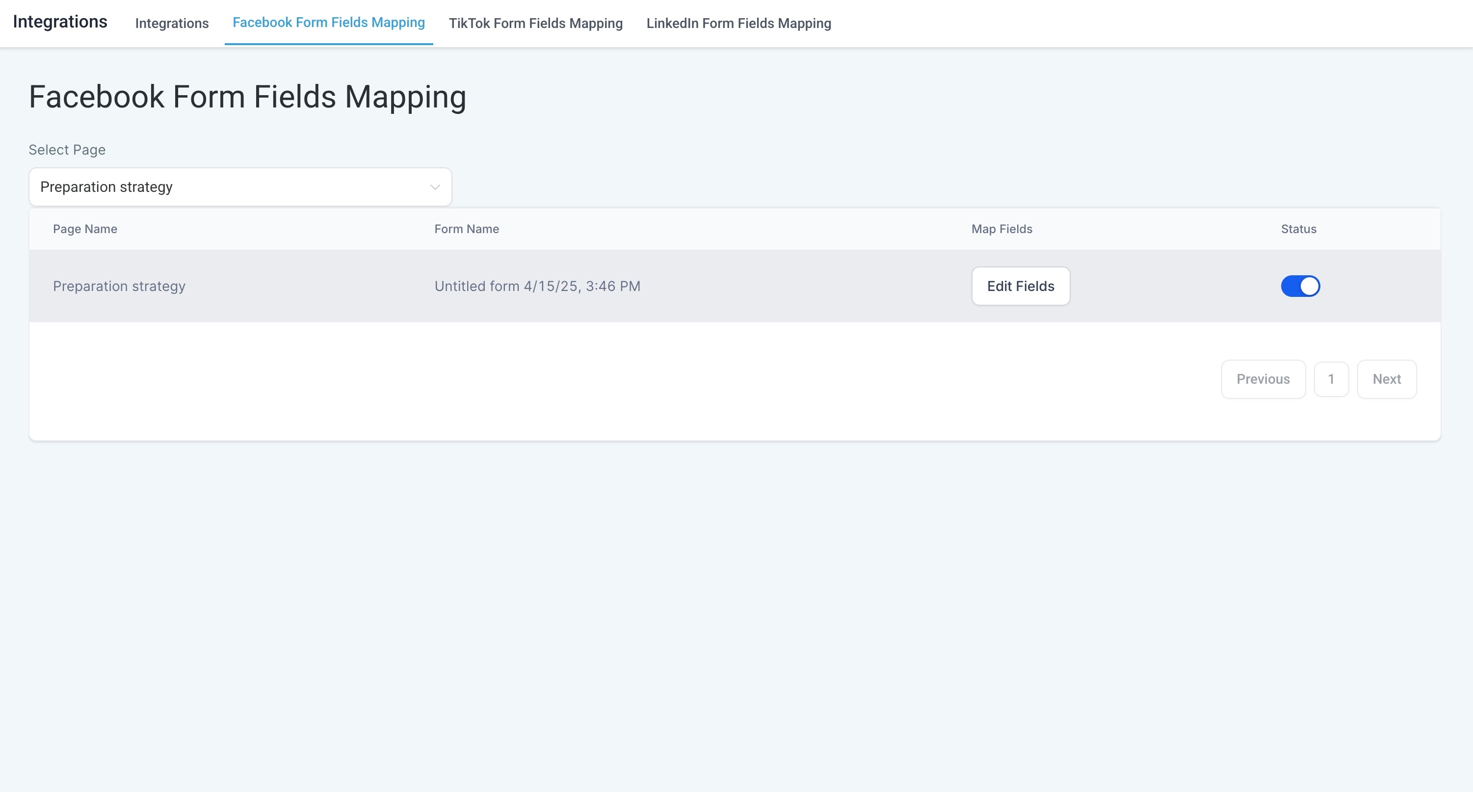 Step 4. Once mapped, the status will be shown as active with toggle button enabled and Map fields status as "Edit Fields"