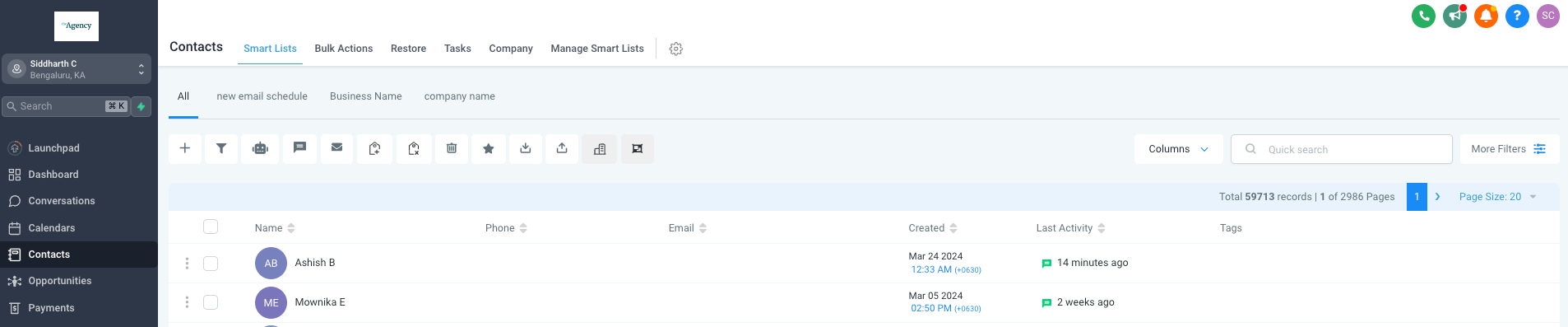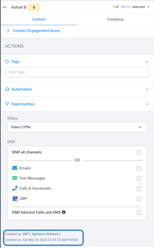 You can view the contact or lead record created from messages or reviews for your connected GBP pages within the Contacts module.
