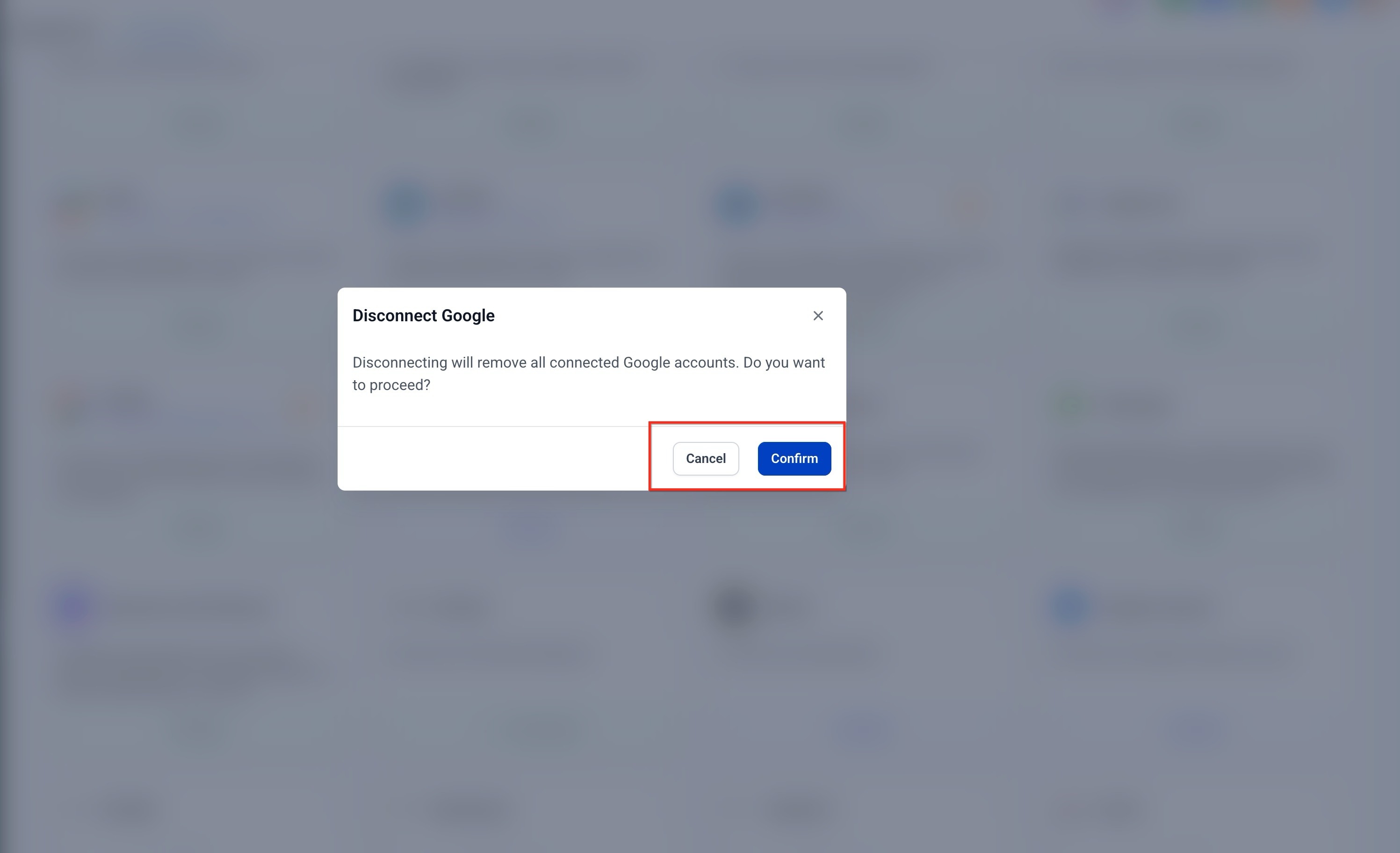 You can disconnect Google accounts in two ways. Individual accounts can be removed from the account management panel, while all accounts can be disconnected at once using the menu on the integration card. Once disconnected, access to Google-related features will stop until a new connection is established.